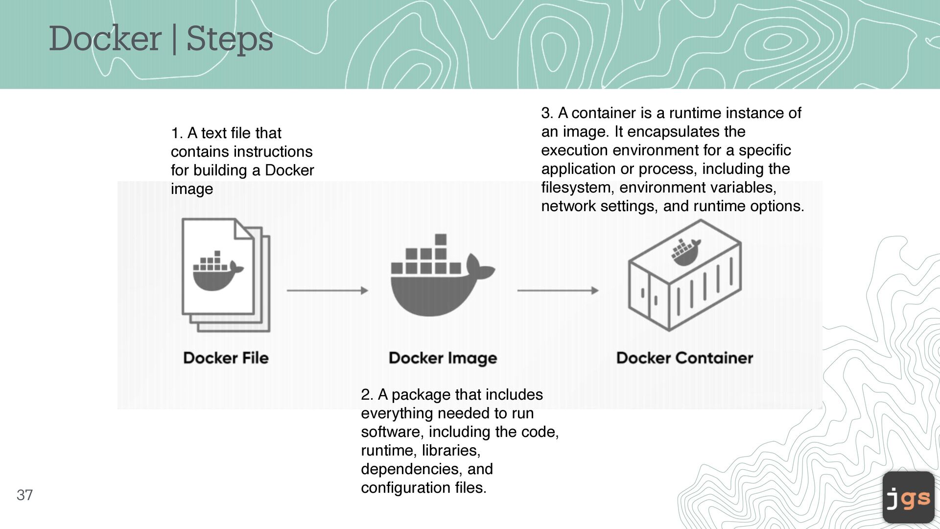 10. Docker | Steps 37 2. A package that includes everything