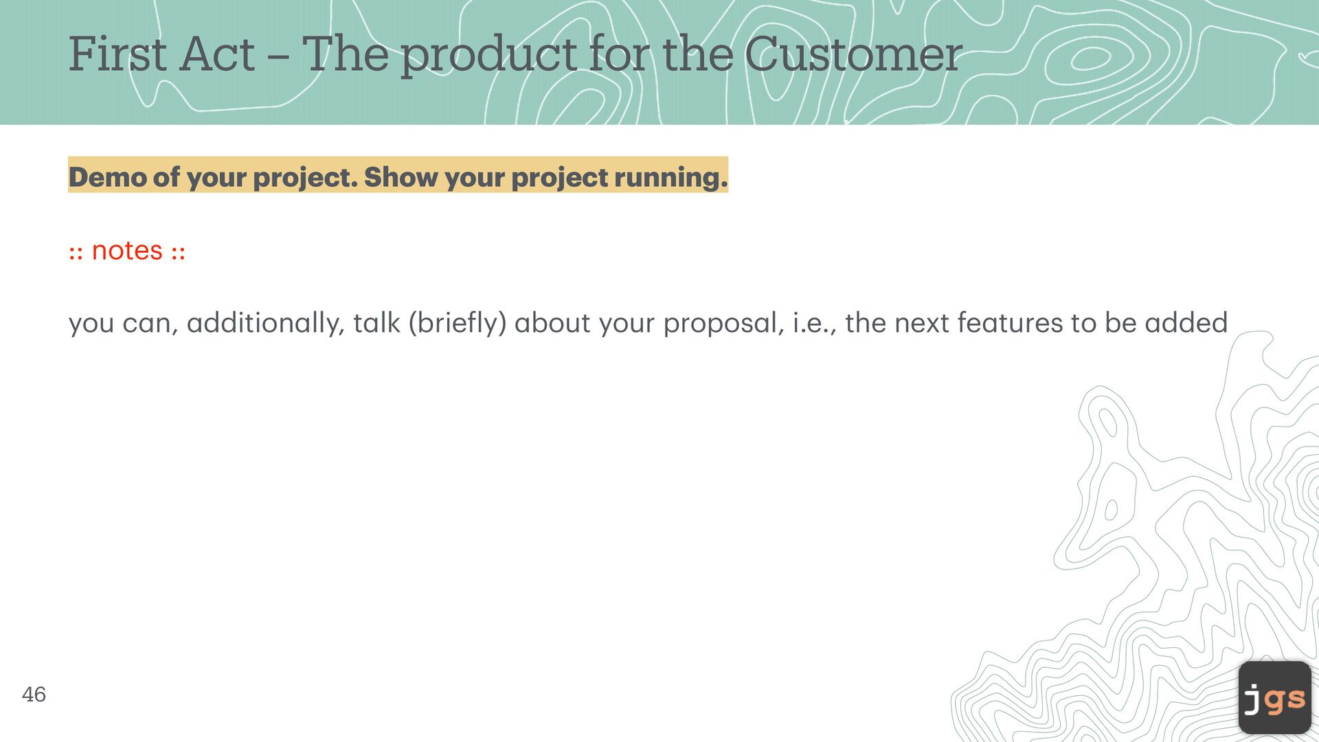 your project. Show your project running. :: notes :: you c a n, a ddition a lly, t a lk (brie f ly) a bout your propos a l, i.e., the next fe a tures to be a dded 46