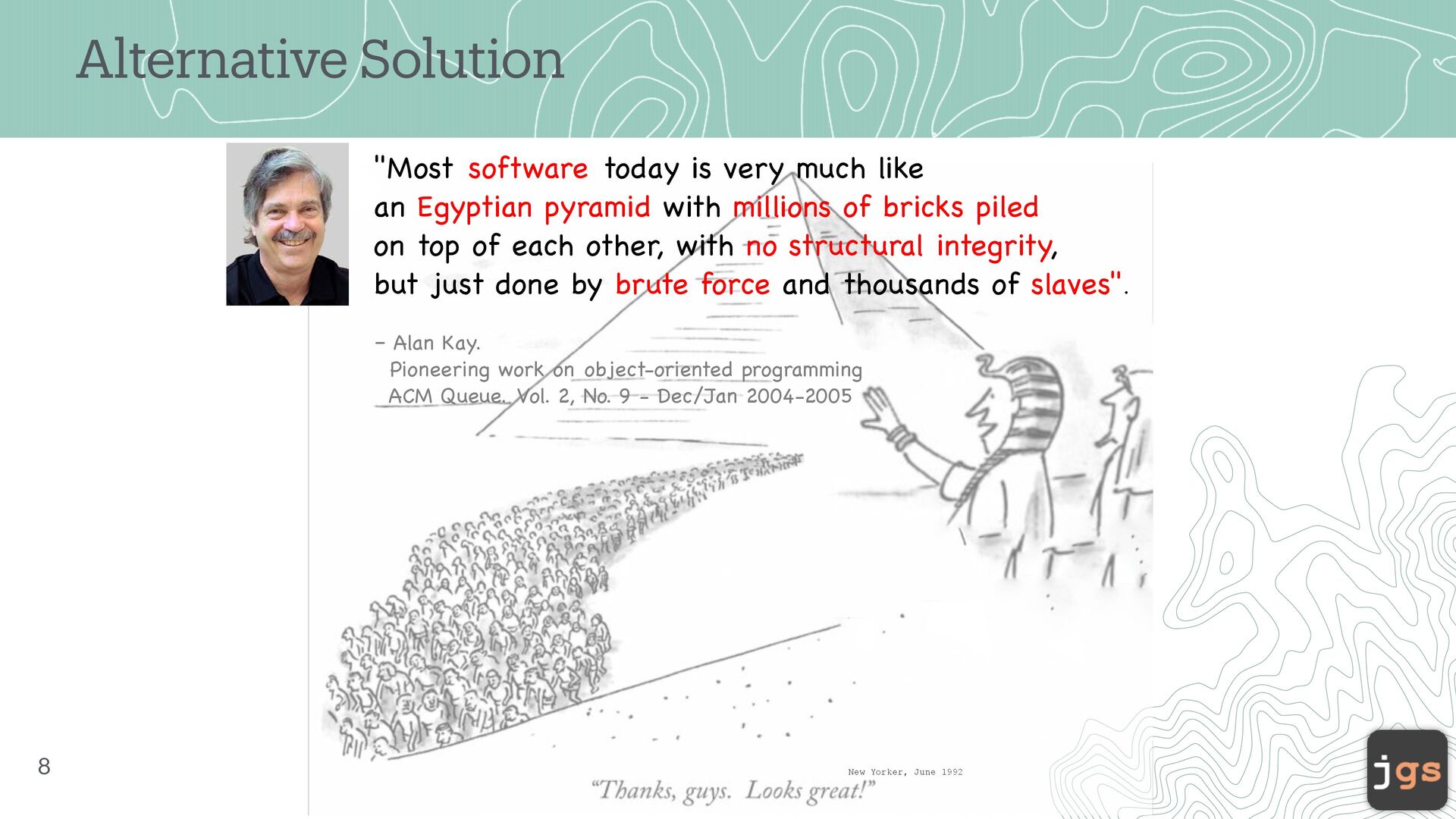 4. Alternative Solution 8 New Yorker, June 1992 "Most software today