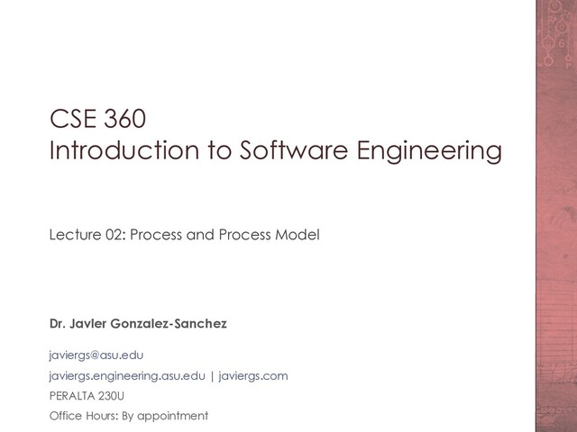 and Process Model • Process: A structured set of activities required to develop a software system Think about this as an “object” • Process Models: A simplified representation of the activities and relationships in a process Think about this as an “class”
