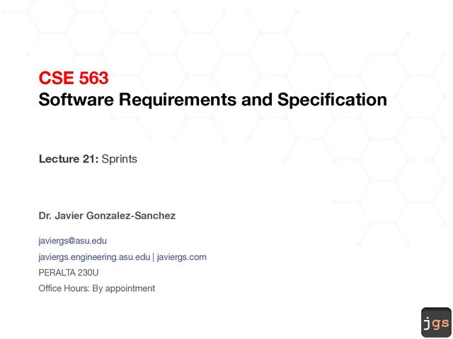 jgs CSE 563 Software Requirements and Specification Javier Gonzalez-Sanchez, Ph.D.