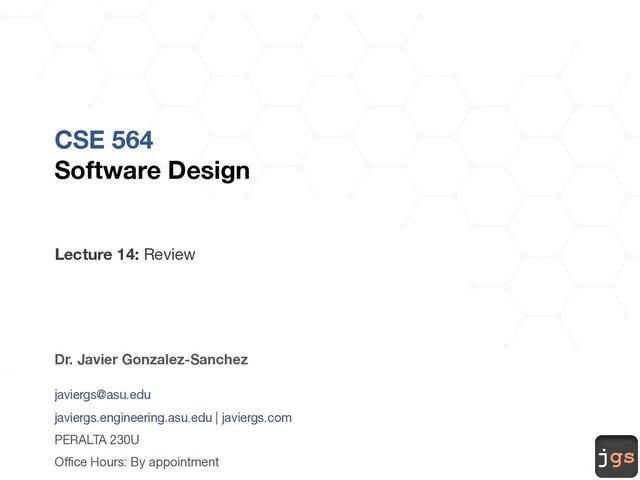 jgs CSE 564 Software Design Javier Gonzalez-Sanchez, Ph.D.