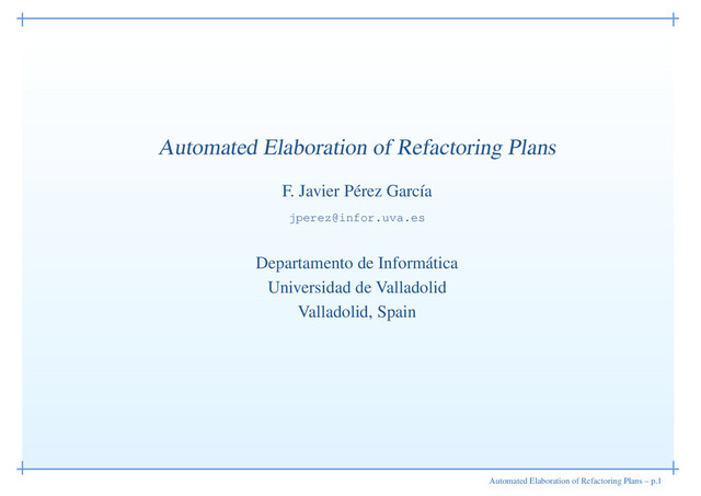 This work presents the first exploration to support the automated elaboration of Refactoring Plans. Graph transformations seem to offer good mechanisms to be used as the relying formalism. The refactoring plan problem has been identified as the membership problem in formal languages theory. It seems to be a promising approach, because graph grammars for which the problem has already been solved, can be used. Presented at GTTSE 2005 (http://wiki.di.uminho.pt/twiki/bin/view/Events/GTTSE).