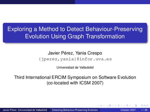 One of the problems of documenting software evolution appears with the extensive use of refactorings. This paper explores a method, based on graph transformation, to detect wether the evolution between two versions of a software system can be expressed by means of a sequence of refactoring operations. For this purpose we extend a graph representation format to use it for simple Java programs, and we show a sample implementation of the method using the AGG graph transformation tool. In case a refactoring sequence exists, our technique can help reveal the functional equivalence between the two versions of the system, at least, as far as refactorings can assure behaviour preservation. Presented in 2007 at the Third International ERCIM Symposium on Software Evolution (http://ercim-news.ercim.eu/en72/joint-ercim-actions/third-international-ercim-symposium-on-software-evolution).