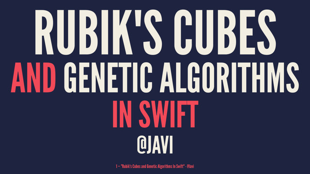 rotatedClockwise case rotatedCounterClockwise } var location: CornerLocation var orientation: Orientation } 22 — "Rubik's Cubes and Genetic Algorithms In Swift" - @Javi