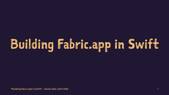 "!"s... var userSession: UserSession! var applicationID: String! func viewDidLoad() { super.viewDidLoad() self.userSession.foo() } } "Building Fabric.app in Swift" - Javier Soto. April 2016 21