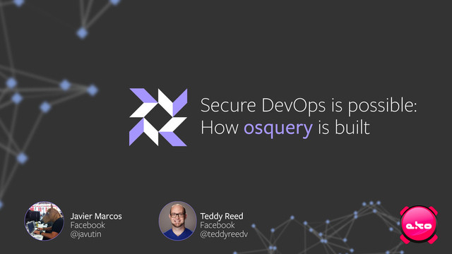 Facebook's osquery is a Linux and OS X intrusion detection and response tool. It supports 10 OS flavors and is continuously built for 8 of those. It is very important that the infrastructure used to test, build, and publish security software be secure itself. This discussion presents how our Security team has enabled any Github contributor to submit C/C++/bash code to our CI and build server, safely. We will guide the audience through our CI hardening process and the attack and vulnerability reports we have received through our bug bounty targeting CI. This includes isolating a Mac Mini fleet of build slaves, not trusting Jenkins as much as possible, automatically building, signing, and publishing packages to AWS S3, doing the same for OS X kernel extension code, adding 2-factor to everything.