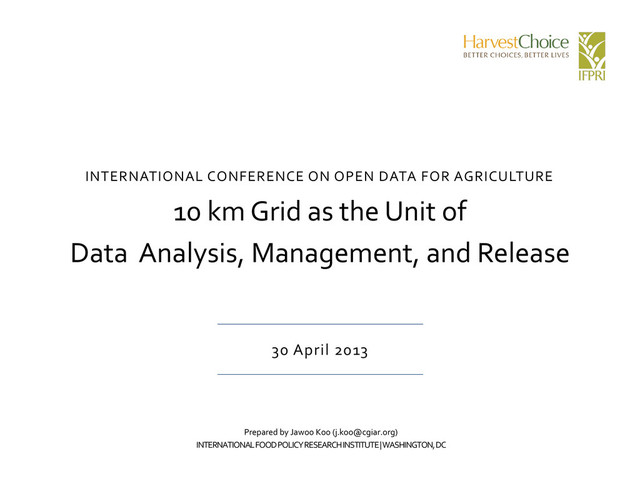 as the Unit of Data Analysis, Management, and Release 30 April 2013 Prepared by Jawoo Koo ([email protected]) INTERNATIONAL FOOD POLICY RESEARCH INSTITUTE | WASHINGTON, DC
