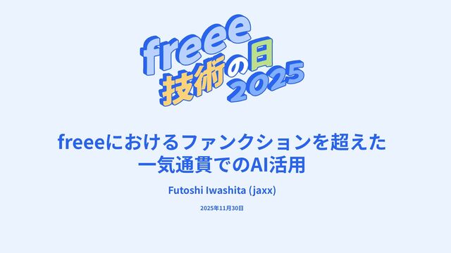 freeeにおけるファンクションを超えた ⼀気通貫でのAI活⽤ Futoshi Iwashita (jaxx) 2025年11⽉30⽇