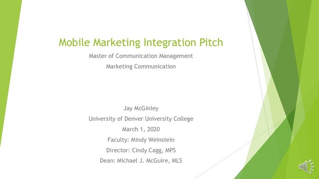 In this presentation, I pitch a plan for how FoodMaven - an online marketplace and logistics company that sells high-quality, local, oversupplied, and imperfect foods - can integrate a mobile marketing initiative into its marketing plan.