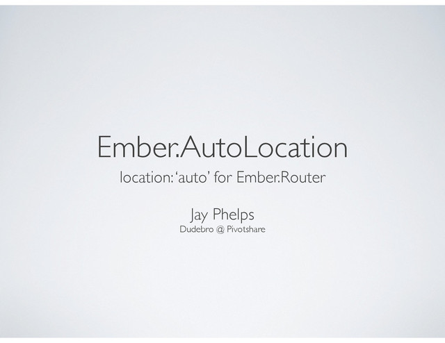 Supports pushState? hashchange? • Compares support vs. current URL format • Transforms current URL into supported (if needed) • /about => /#/about (vise versa) • Provides supported Ember.Location class to the Router • Handlebars `LinkTo` provides currently supported URLs (clean in pushState, hash in older)