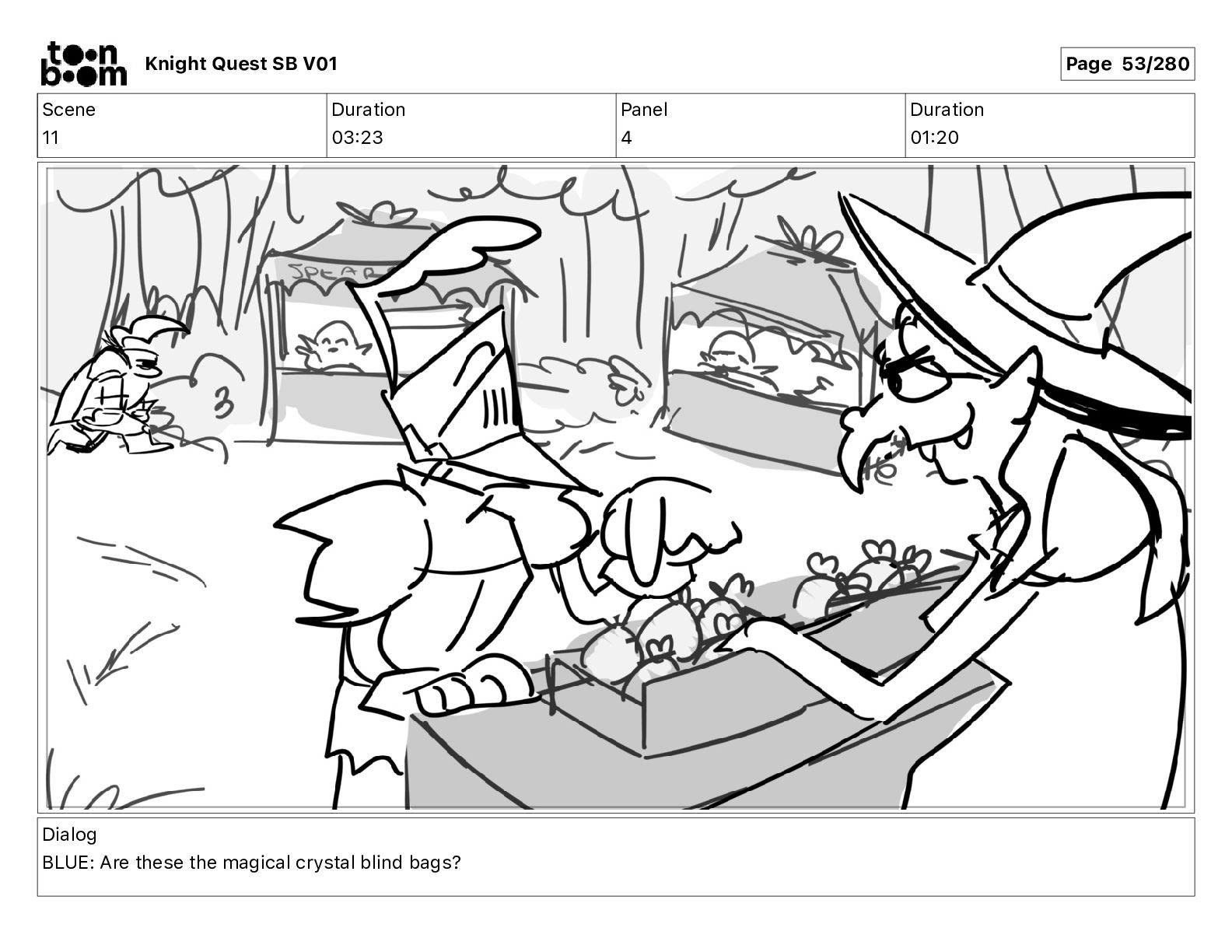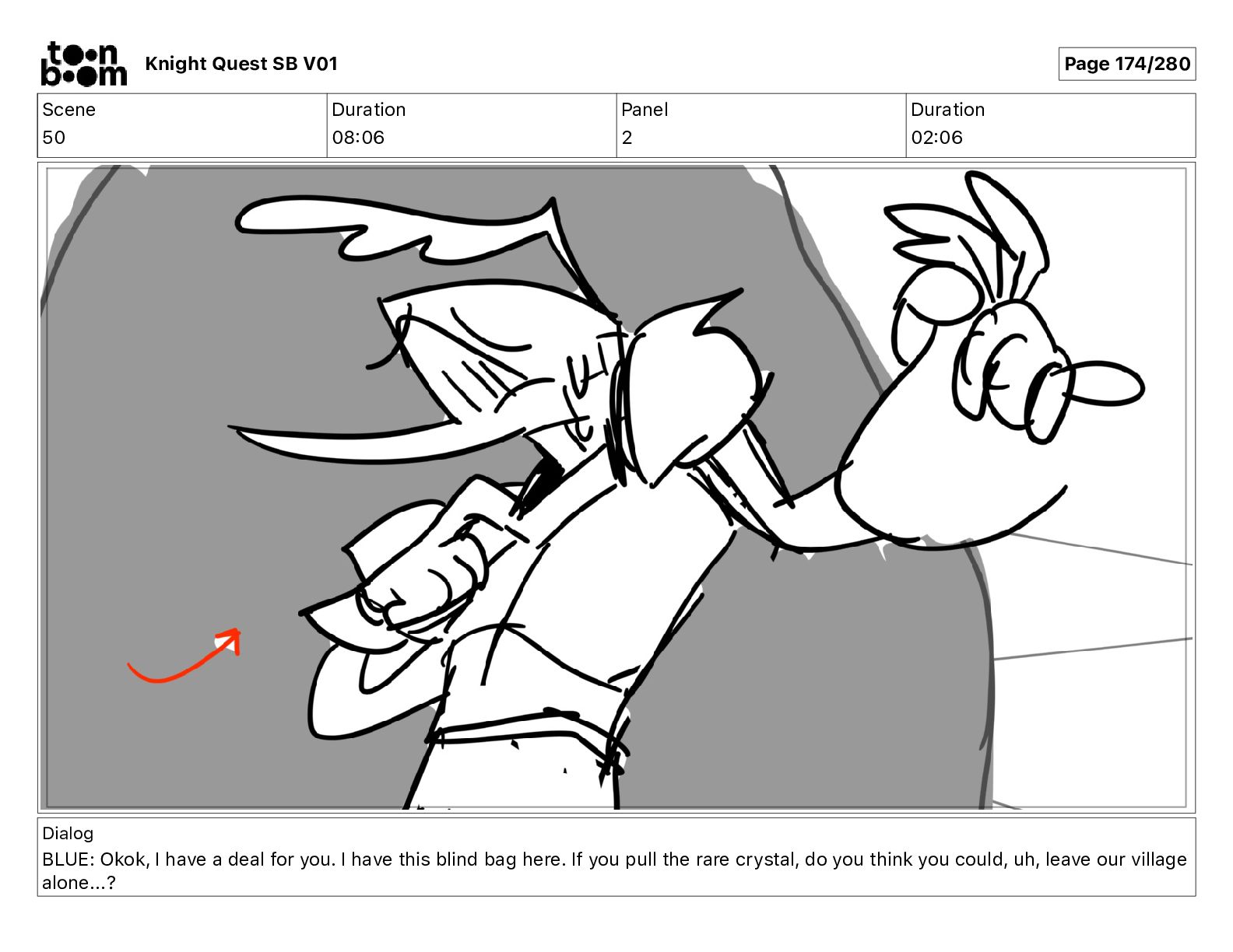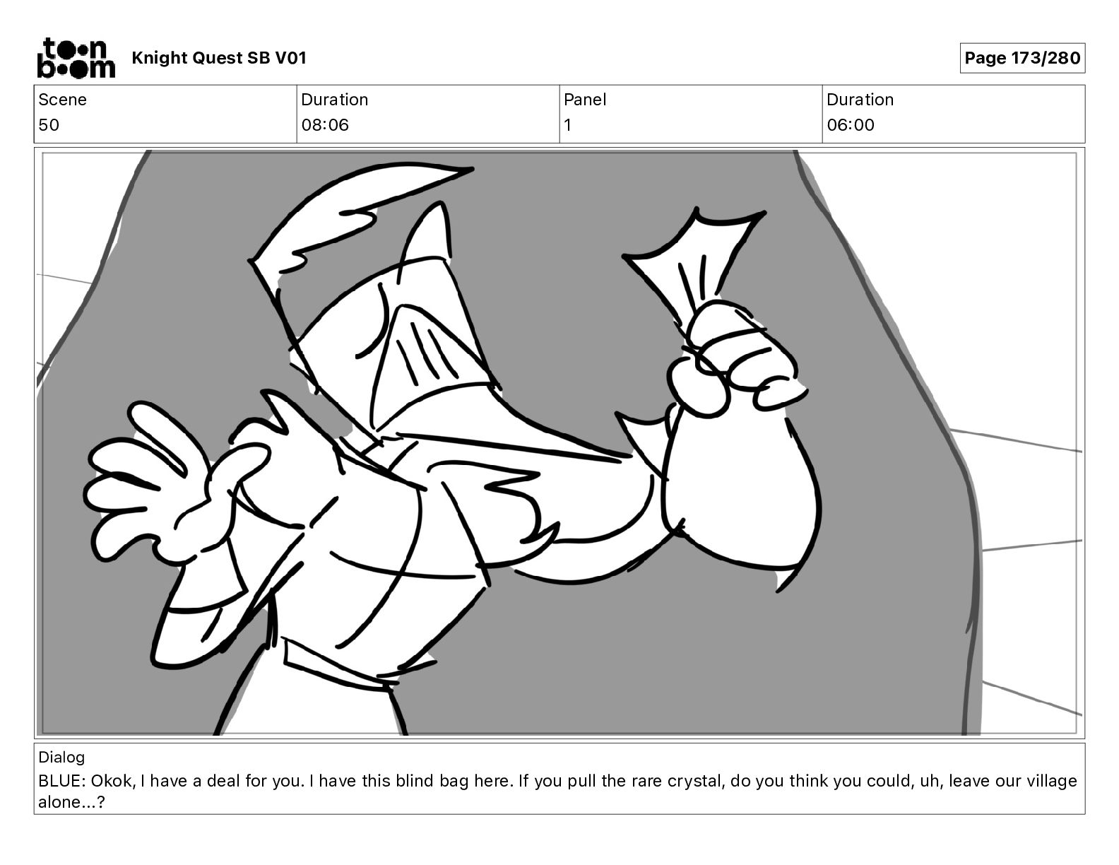Dialog BLUE: Okok, I have a deal for you. I have this blind bag here. If you pull the rare crystal, do you think you could, uh, leave our village alone...? Knight Quest SB V01 Page 174/280