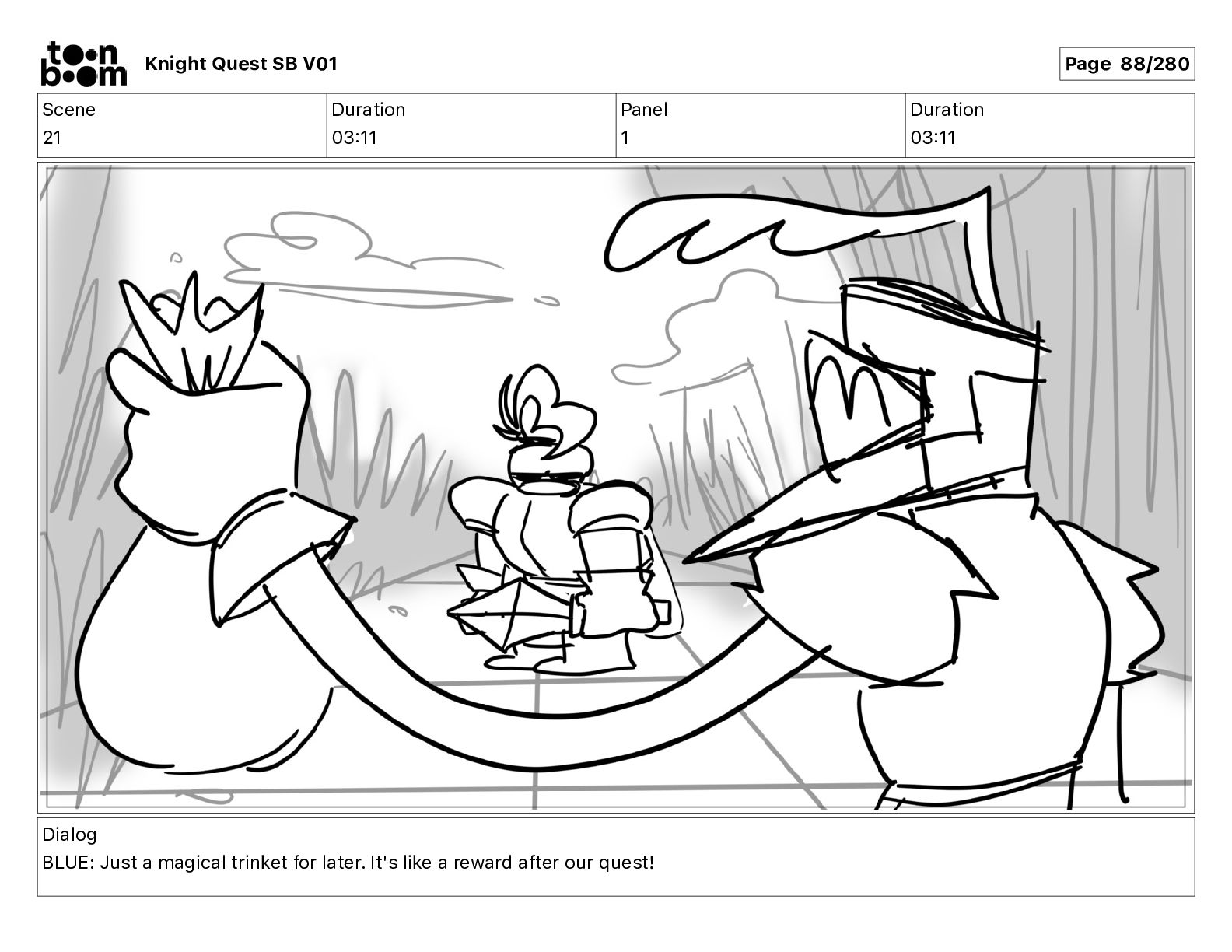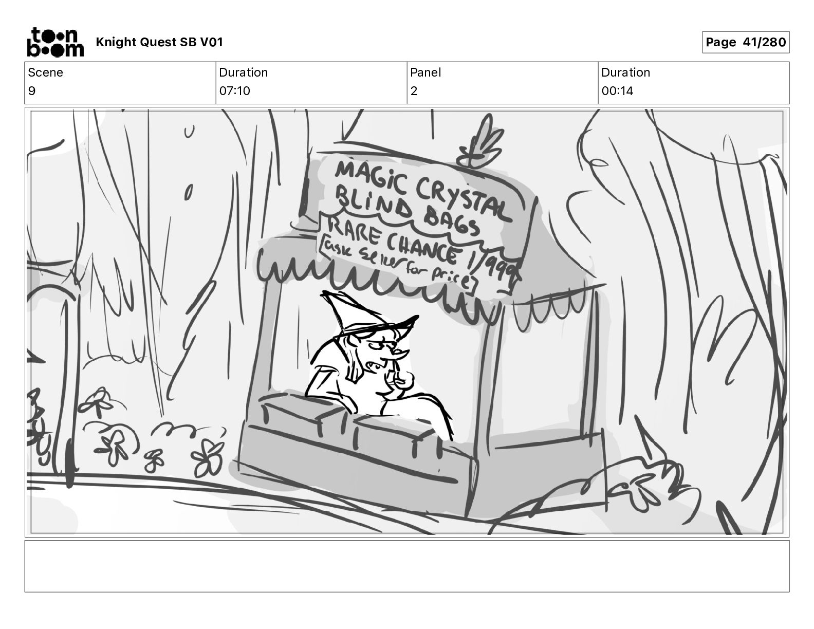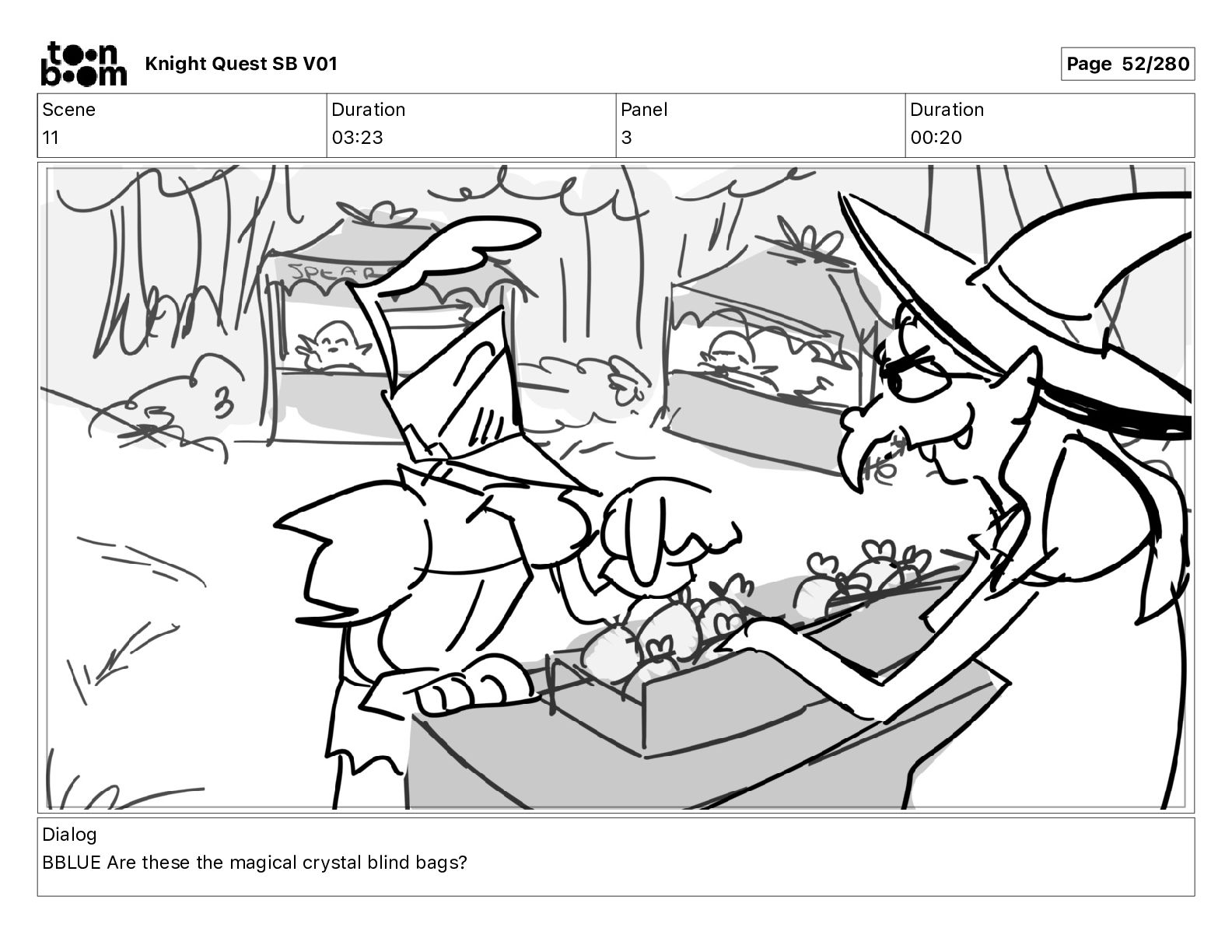 Dialog BLUE: Okok, I have a deal for you. I have this blind bag here. If you pull the rare crystal, do you think you could, uh, leave our village alone...? Knight Quest SB V01 Page 174/280