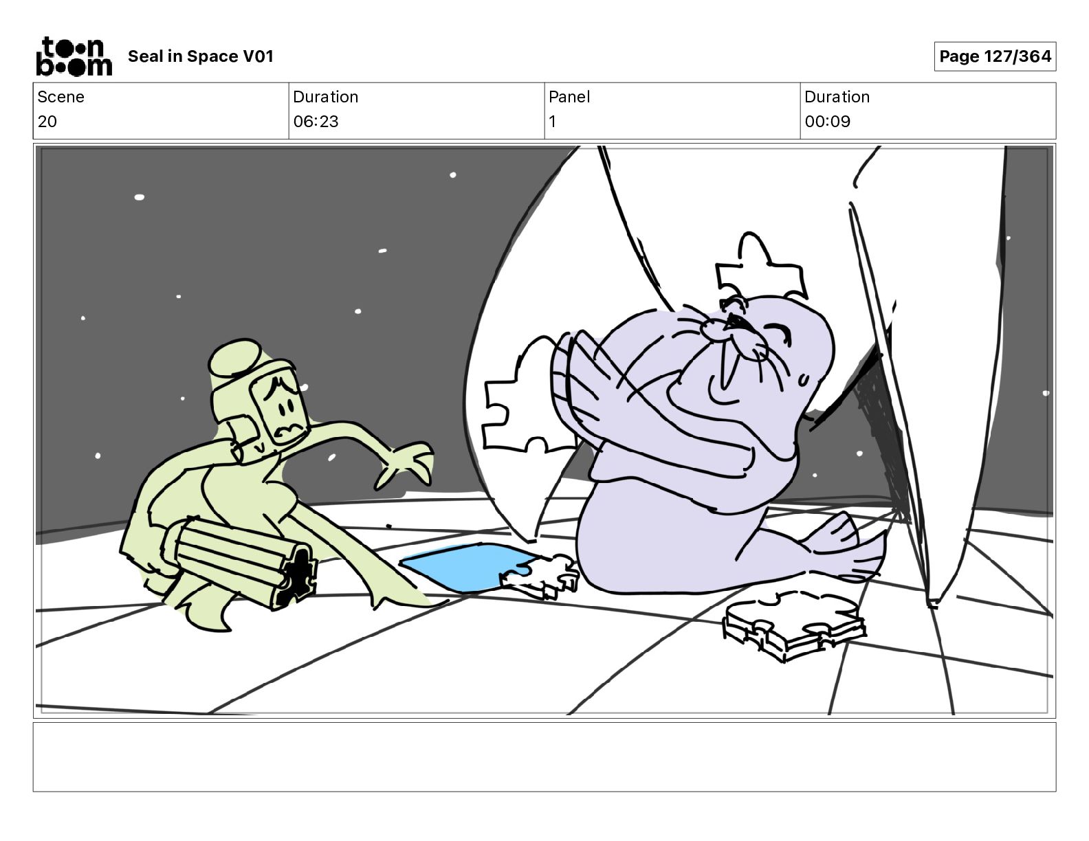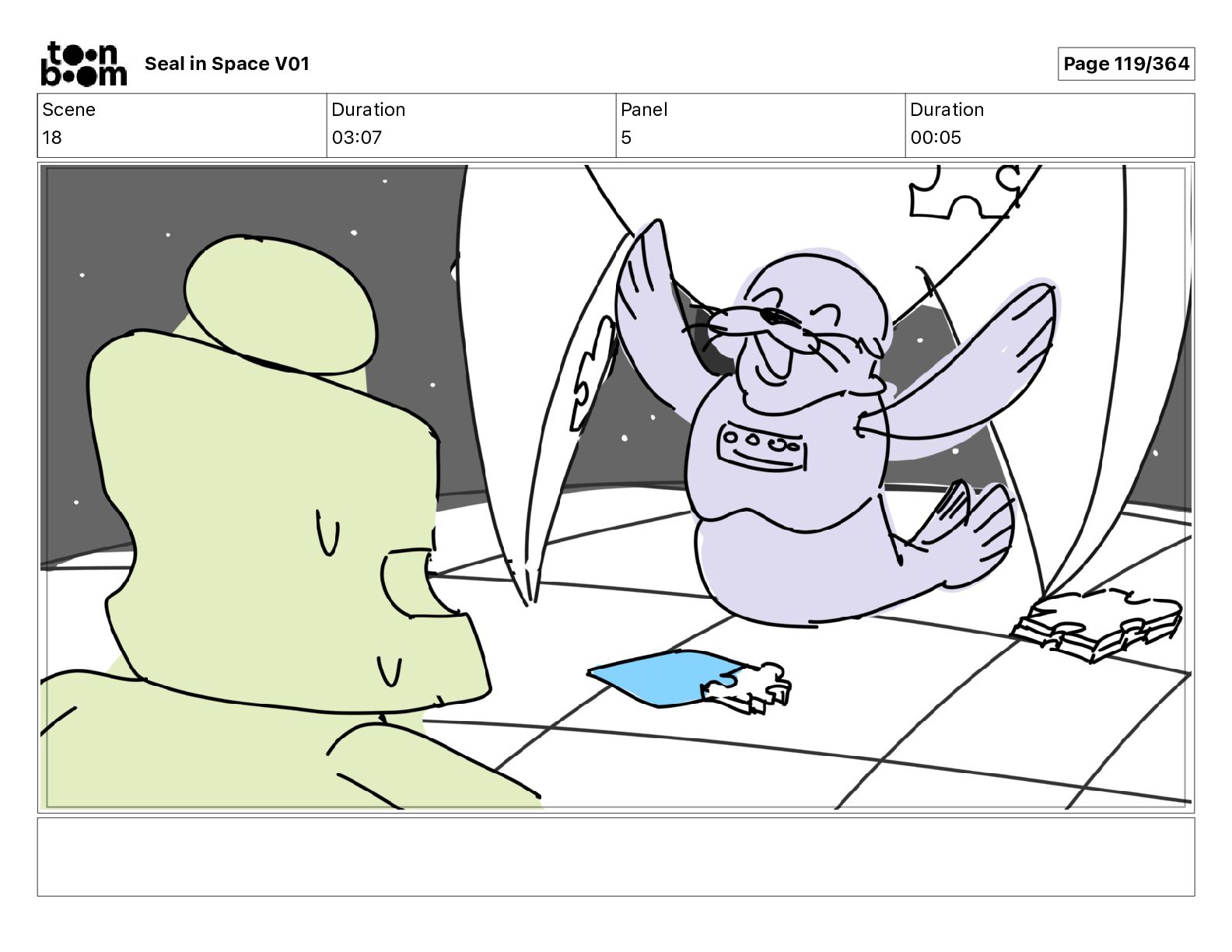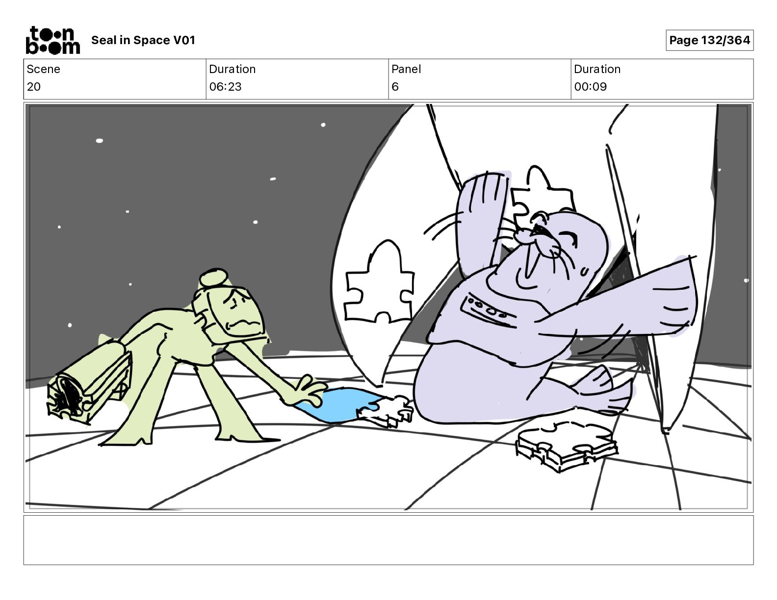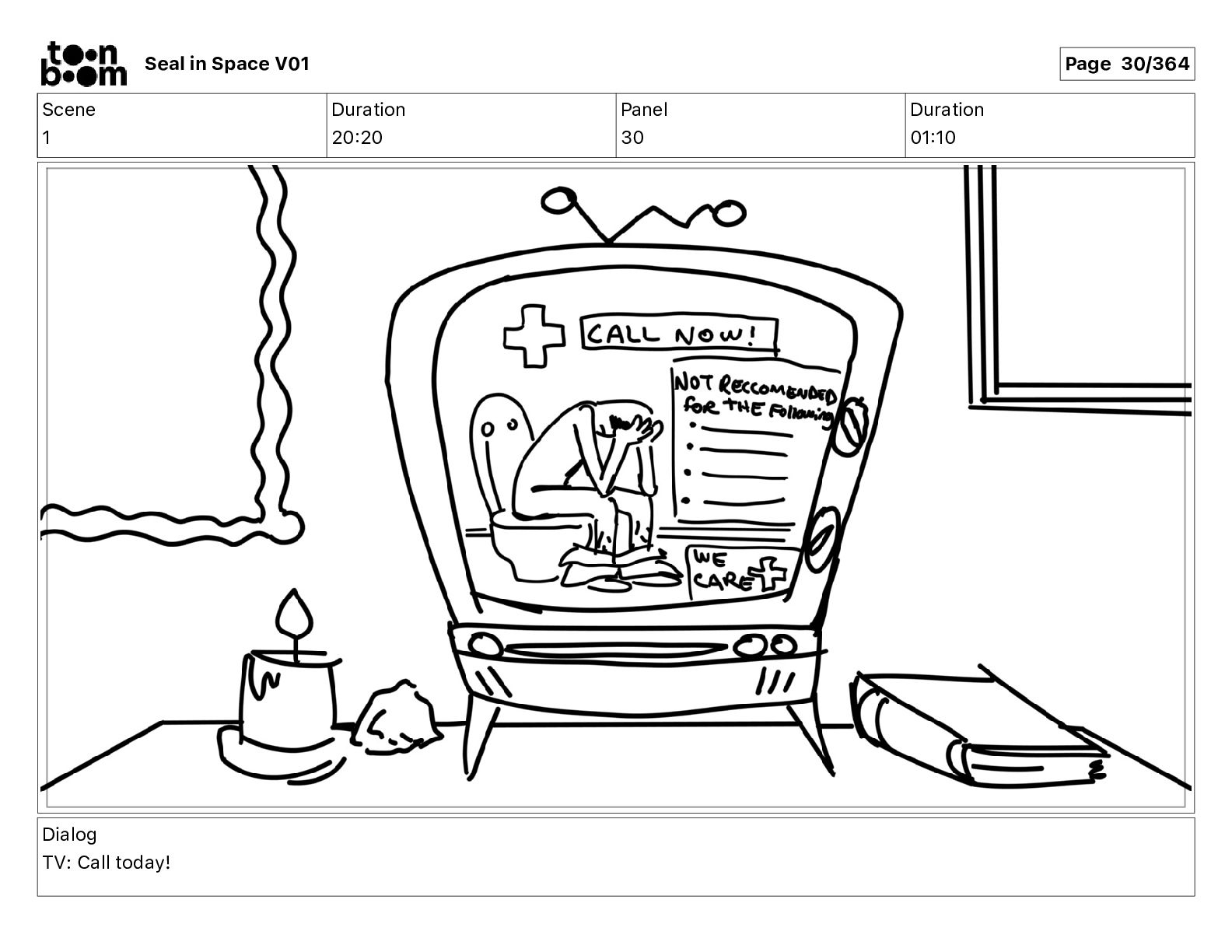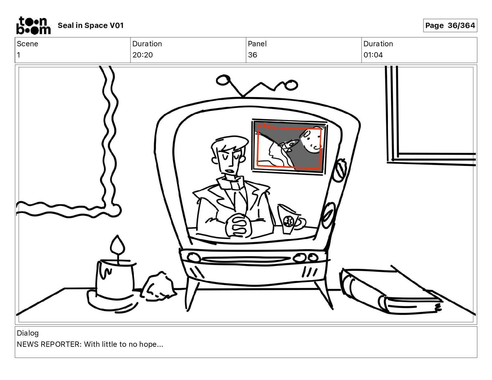 Dialog NEWS REPORTER (O.S.): This just in! In a shocking turn of events, the rocket has re-entered Earth's atmosphere and will be landing shortly. Seal in Space V01 Page 297/364