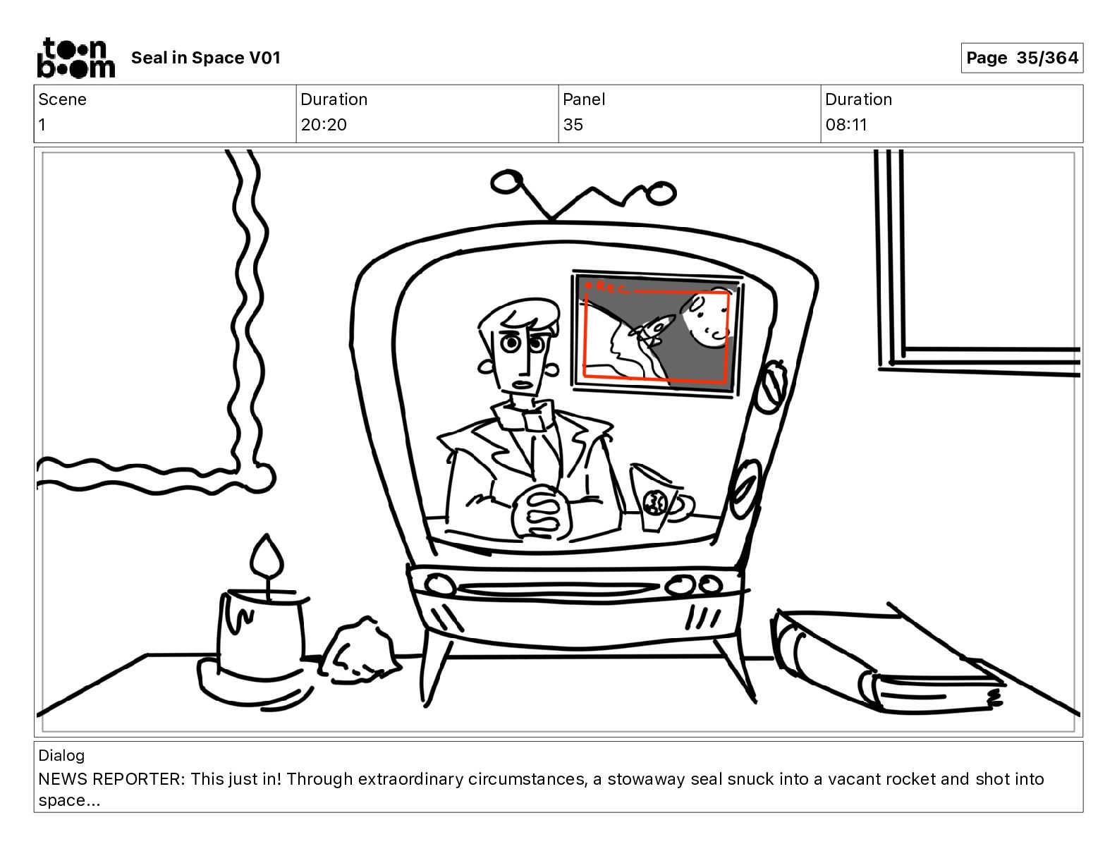 Dialog NEWS REPORTER: This just in! Through extraordinary circumstances, a stowaway seal snuck into a vacant rocket and shot into space... Seal in Space V01 Page 35/364