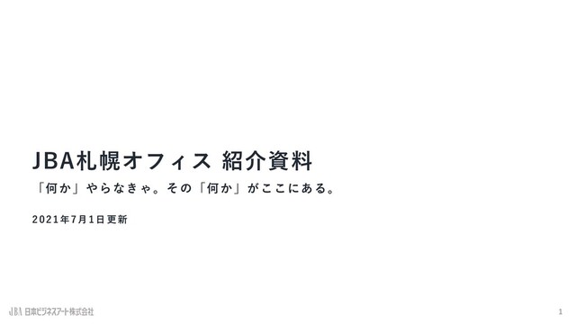 1 JBA札幌オフィス 紹介資料 「何か」やらなきゃ。その「何か」がここにある。 2021年 7⽉ 1⽇更新