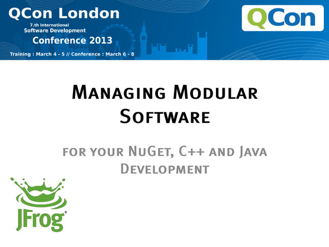 Binary repository is one of the cornerstones of building modular software. In this session we will demonstrate how it can be used to support modular development in Java, C++ and the .NET platform (using NuGet).