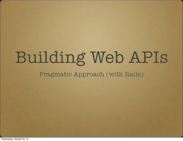 Rails, just lighter. Integration Testing Use Rack::Test, RSpec Request Specs Test HTTP status codes and response bodies Version your API Secure your API Document your API Wednesday, October 23, 13