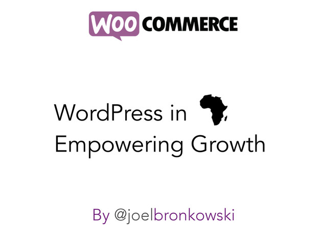 A 10-15 minute overview of the potential for market growth in Africa, driven by internet infrastructure, eCommerce and WordPress. Also covers the usage of WooCommerce in Africa and some ideas for expanding the WooCommerce market in Africa.