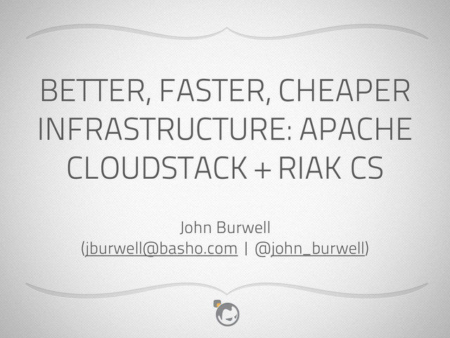 availability and reliability using commodity components. We then apply these strategies using Apache CloudStack and Riak CS.