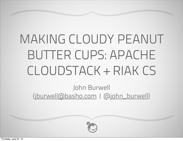 Building complete private cloud architectures that support both traditional application virtualization and emerging distributed cloud systems requires compute and object storage storages. Together Apache CloudStack and Basho's Riak CS provide the infrastructure to support both of workloads. The presentation covers the following topics: