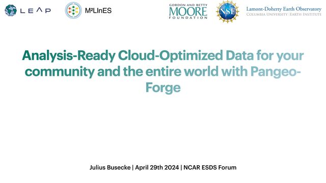 Slides for "Analysis-Ready Cloud-Optimized Data for your community and the entire world with Pangeo-Forge" presented at ESDS Forum on April 29, 2024 by Julius Busecke.