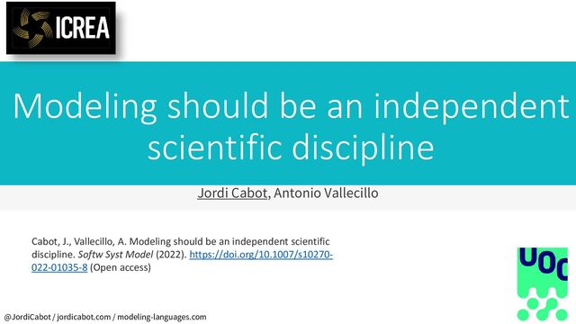 We argue that bringing to other engineering and scientific fields, our modeling expertise is a win–win opportunity where we can all learn from each other as we all model, but in complementary ways. Nevertheless, to fully unleash the benefits of this collaboration, we must go beyond individual efforts trying to adapt single techniques from one field to another. It requires a deeper reformulation of modeling as a whole. It is time for modeling to become an independent discipline where all fields of knowledge can contribute and benefit from.