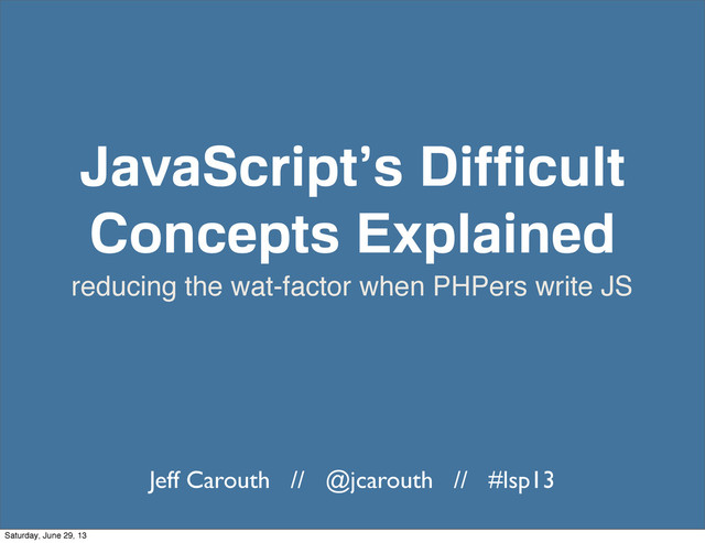 When approaching JavaScript as a PHP developer some of the nuances of the language take a while to become comfortable. If you've ever wondered how context and the this keyword work, when to declare a variable, how to create objects and use prototypes in JavaScript, you are not alone. These concepts seems crazy at first, but with some examples you can grasp and use them in your code today. This session will cover the finer points of JavaScript the language from the perspective of someone who is proficient with PHP or another language.