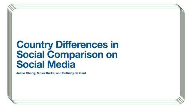 Social comparison is a common focus in discussions of online social media use, and differences in its frequency, causes, and outcomes may arise from country or cultural differences. To understand how these differences play a role in experiences of social comparison on Facebook, a survey of 37,729 people across 18 countries was paired with respondents' activity on Facebook. The findings were augmented with 39 in-person interviews in three countries. Social comparison frequency was more strongly predicted by country than by age, gender, and Facebook activity combined, indicating that country differences are important to consider when studying social comparison. Women's and men's experiences differed greatly between countries. Exposure to high feedback counts on friends' posts was associated with more frequent social comparison, but only in some countries. Design interventions that account for such country differences may be more effective at reducing the negative outcomes of social comparison.