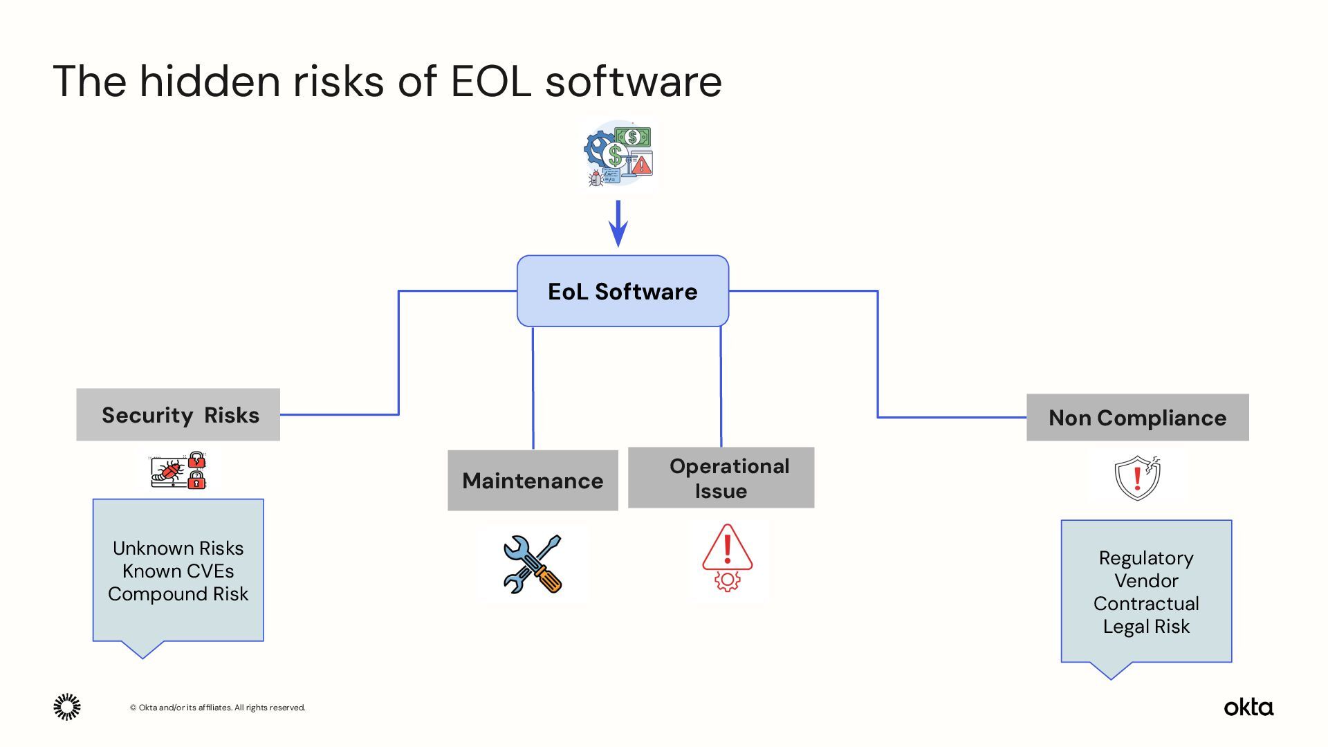 - The hidden risks of EOL software (Security vulnerabilities = the mold you don’t see)