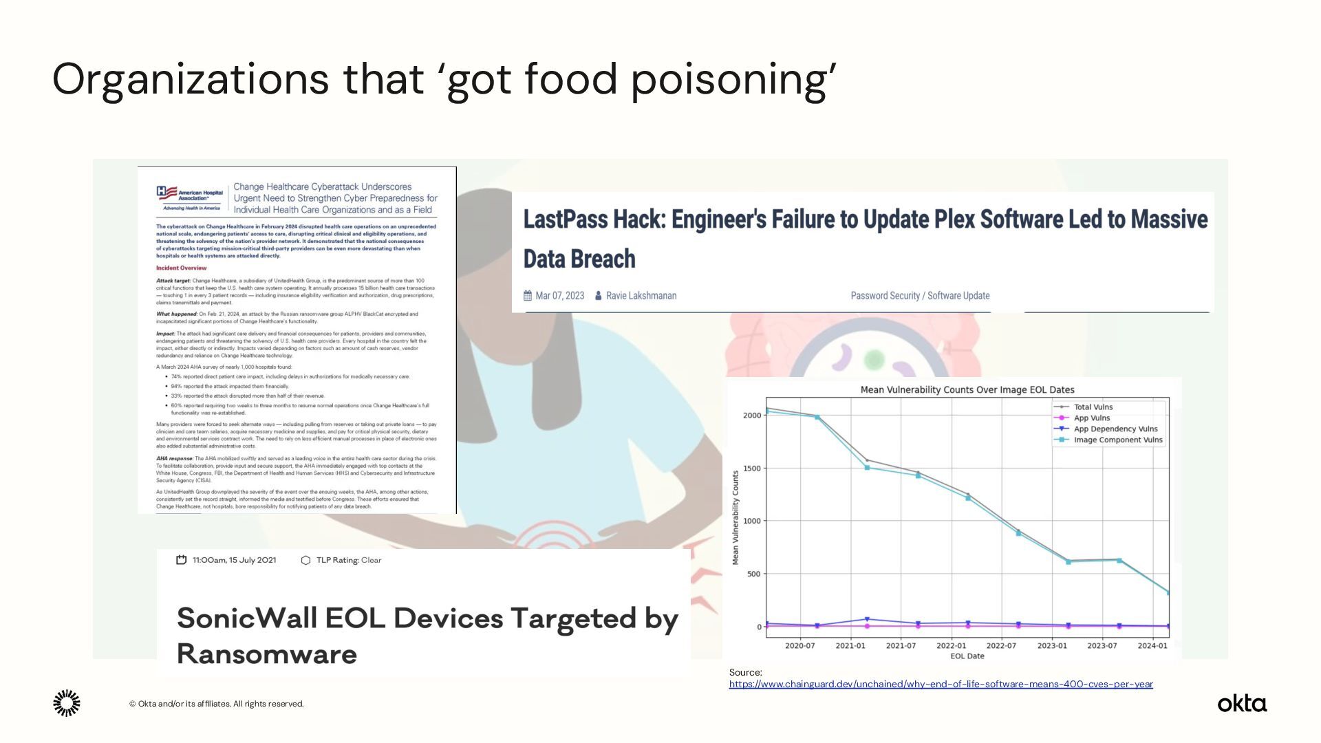 - Case studies of organizations that ‘got food poisoning’ (Real-world consequences of ignoring EOL software)