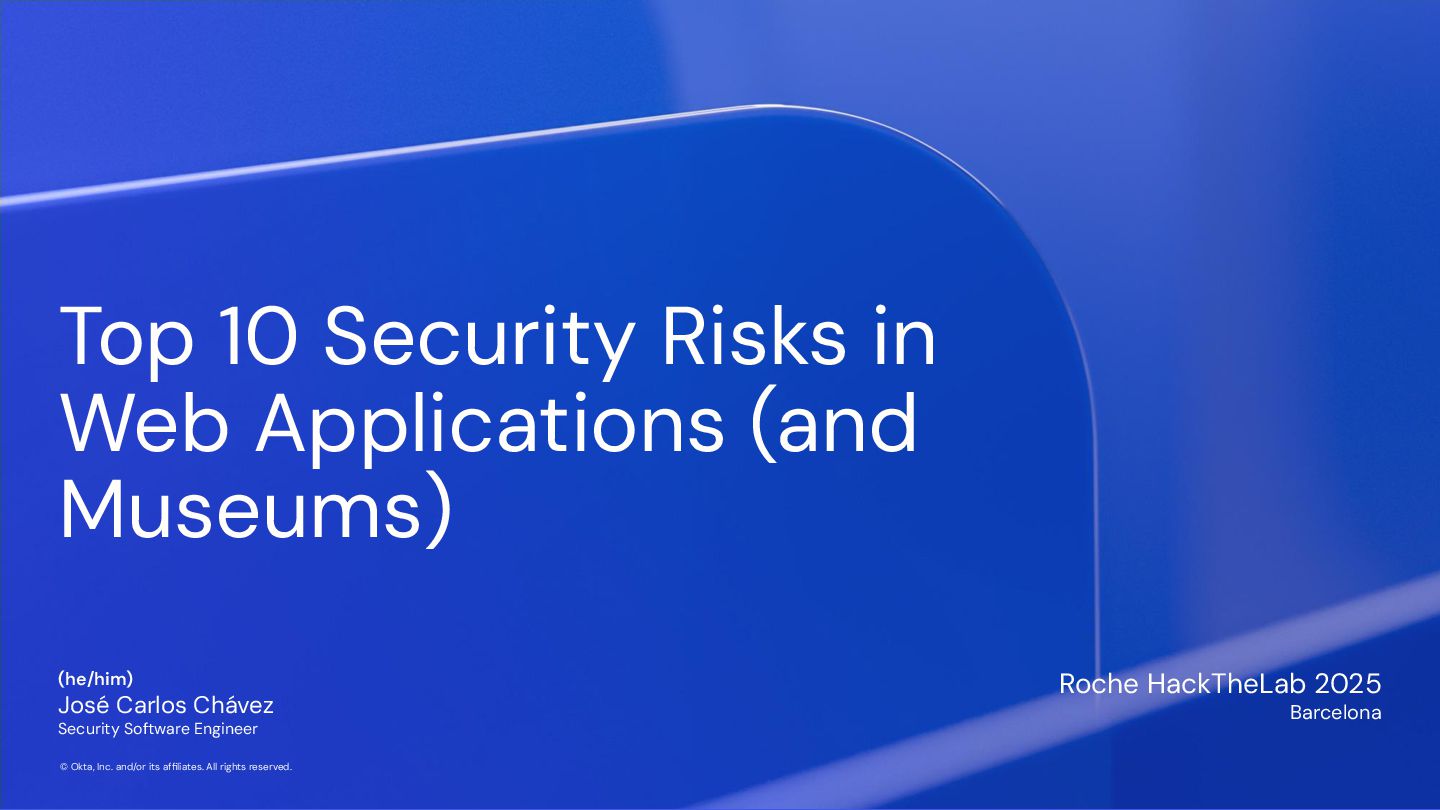 Okta, Inc. and/or its affiliates. All rights reserved. Top 10 Security Risks in Web Applications (and Museums) Roche HackTheLab 2025 Barcelona (he/him) José Carlos Chávez Security Software Engineer