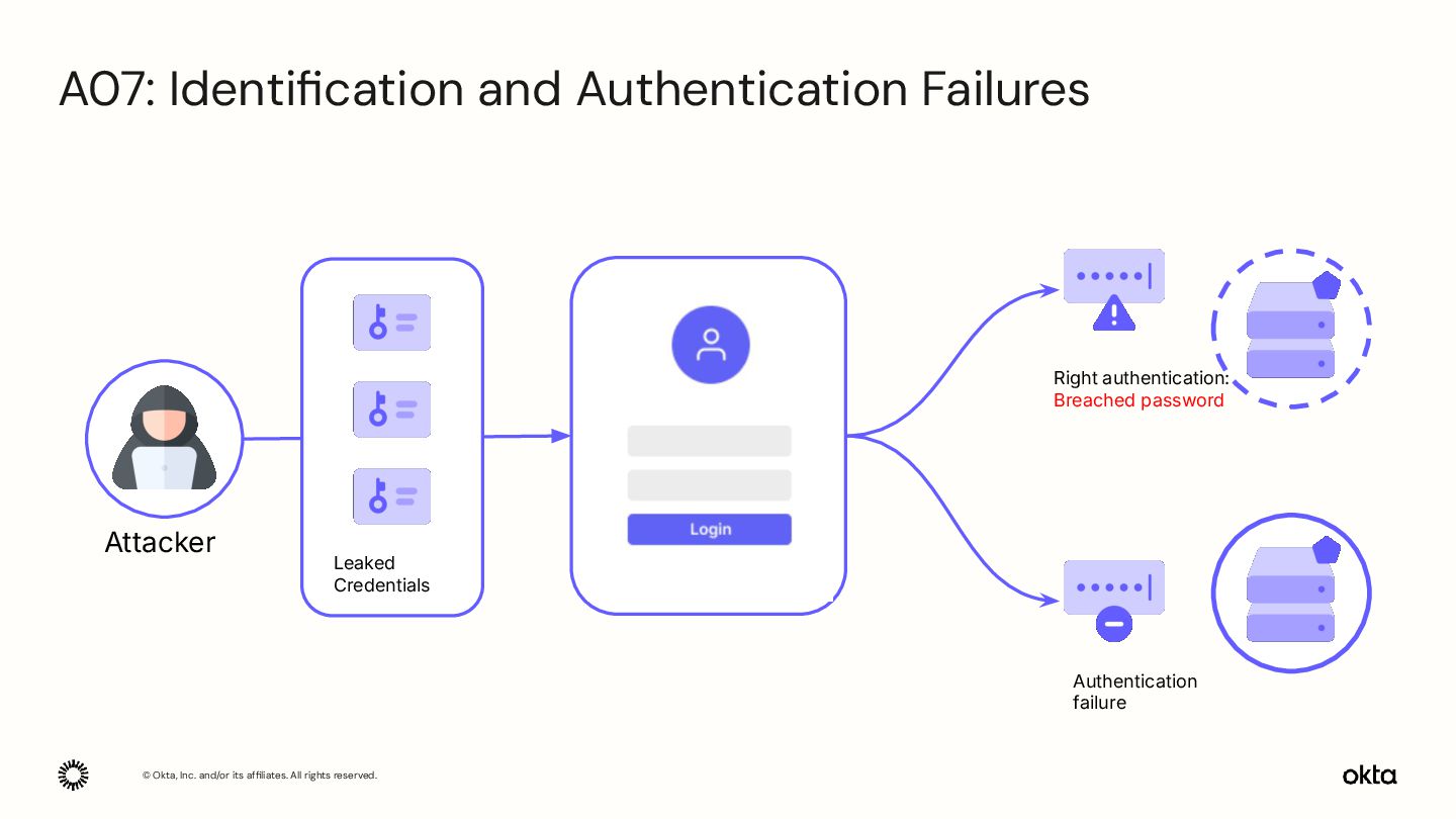 Leaked Credentials Right authentication: Breached password Authentication failure A07: Identification and Authentication Failures