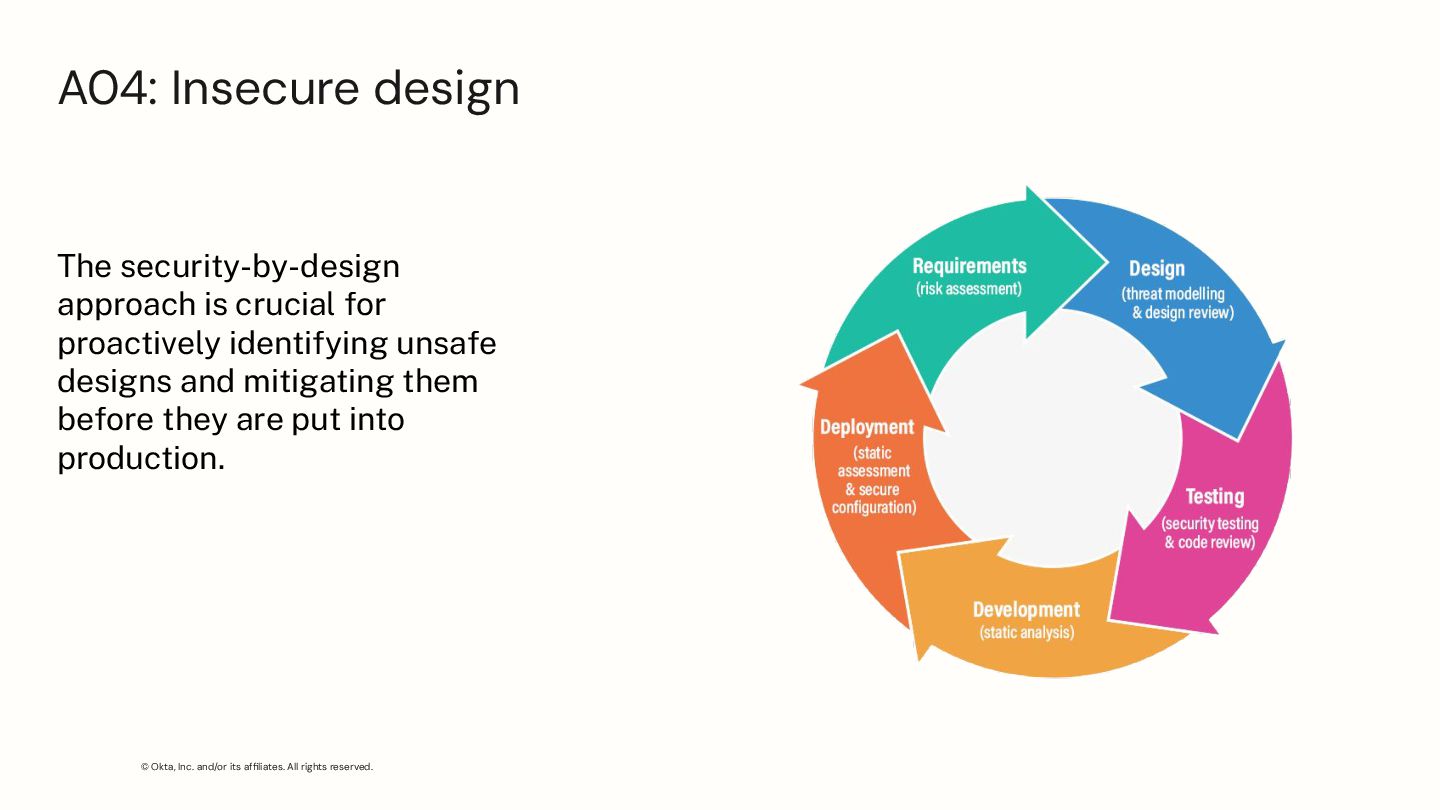 security-by-design approach is crucial for proactively identifying unsafe designs and mitigating them before they are put into production. A04: Insecure design