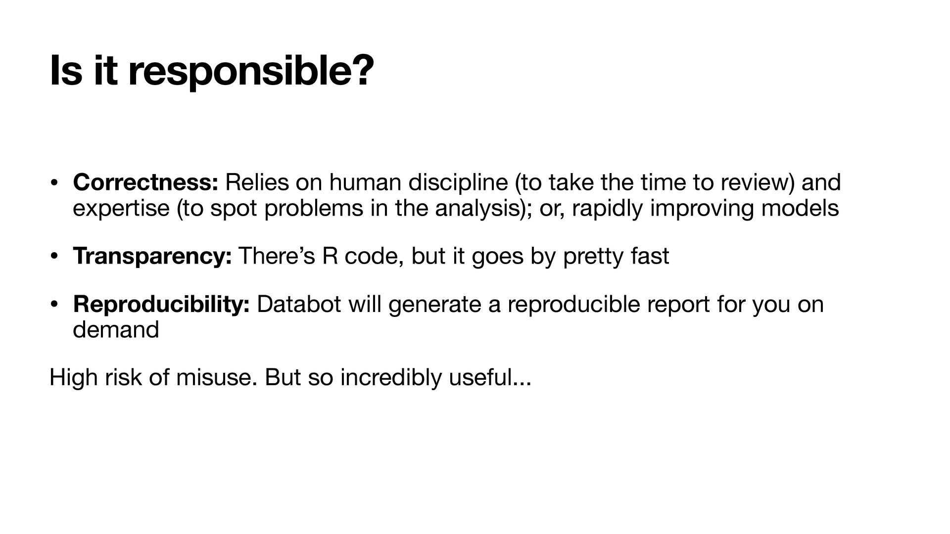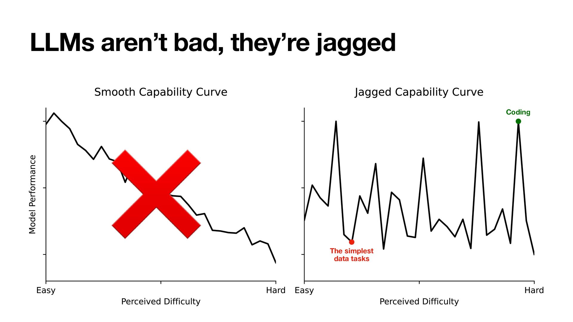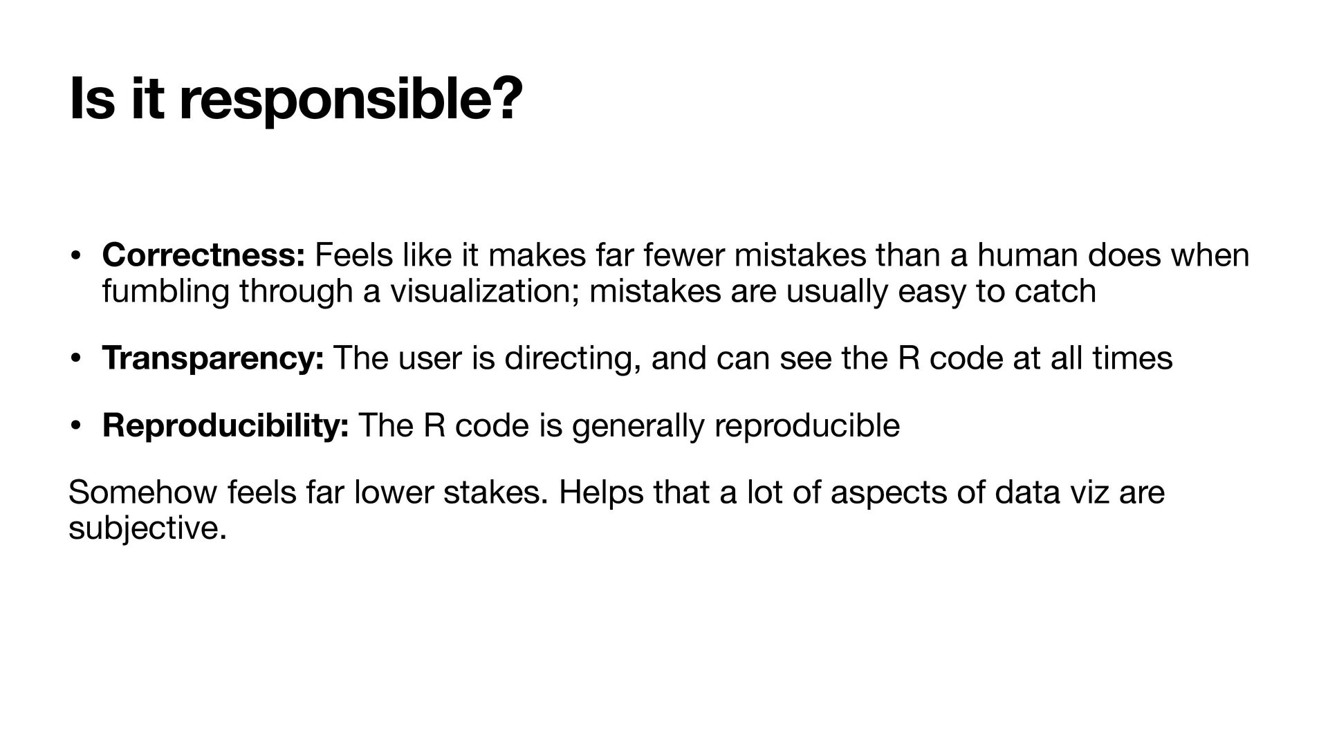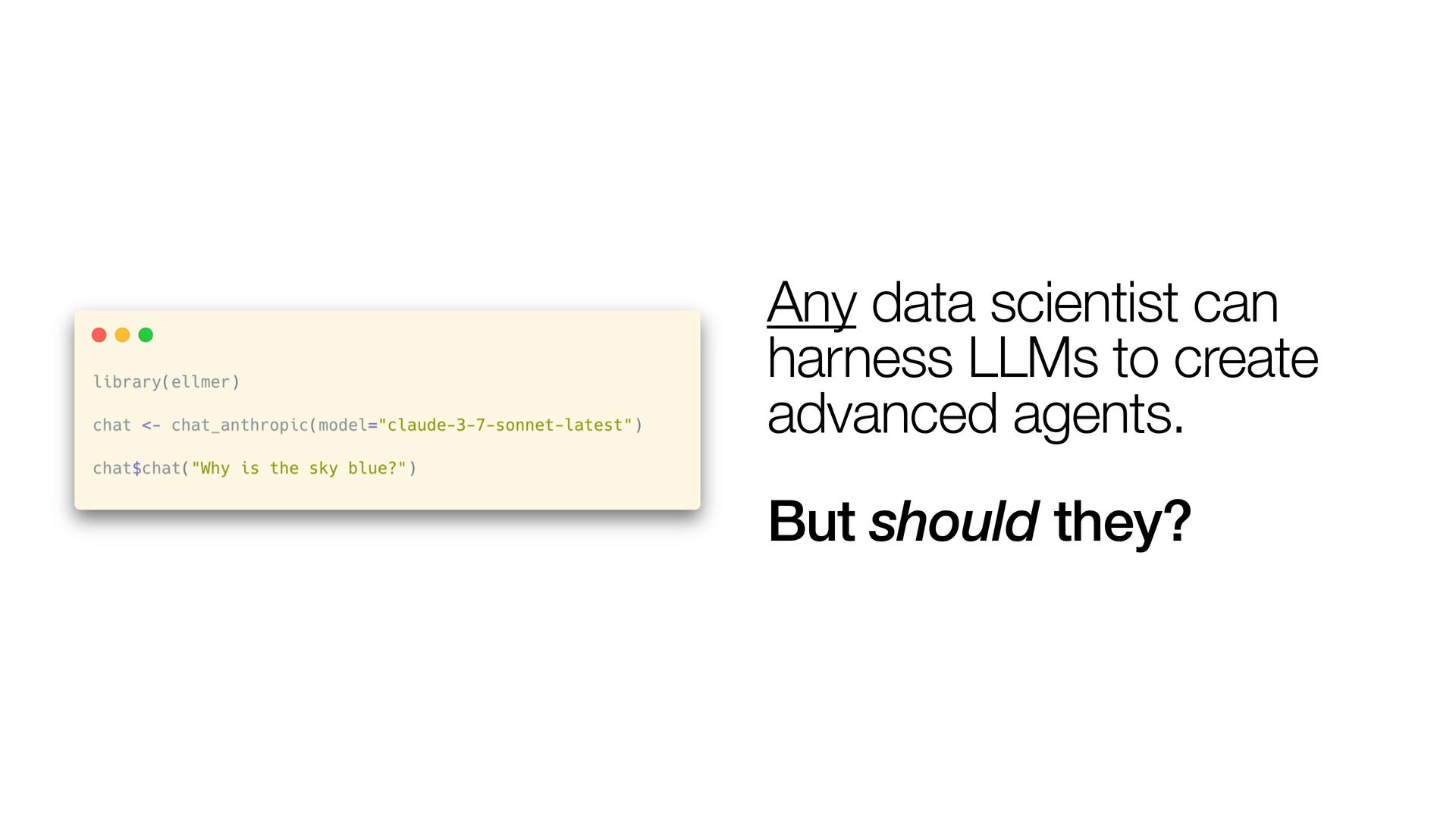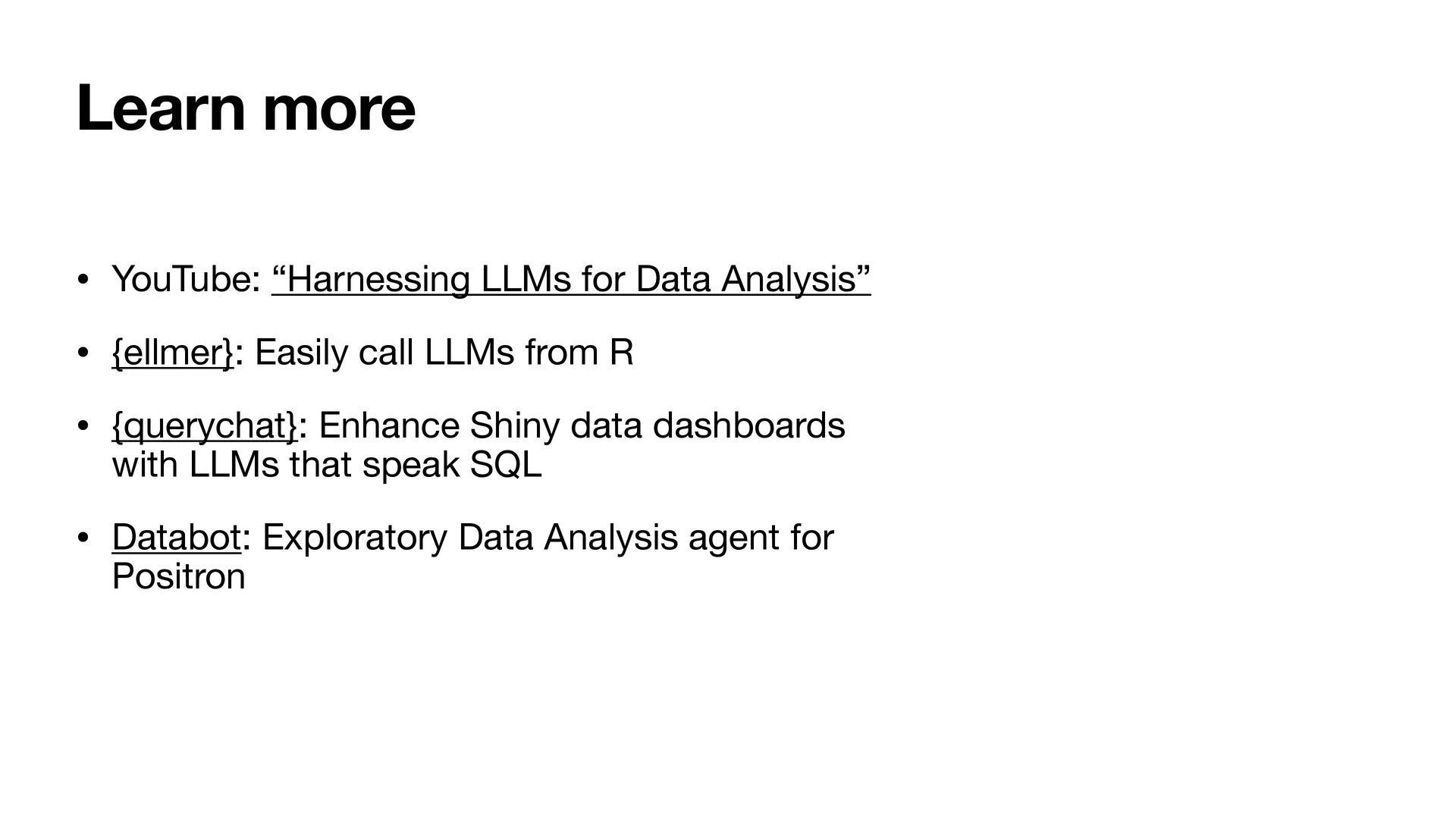 an array of random numbers, of length n values <- runif(n) client <- ellmer::chat("openai/gpt-4.1") client$chat("How long is this array?", jsonlite::toJSON(values)) • n=10, LLM says: 10 ✅ • n=100, LLM says: 100 ✅ • n=1000, LLM says: 1000 ✅ • n=10,000, LLM says: 1000 ❌ • n=103, LLM says: 100 ❌