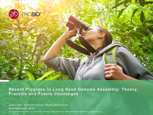With the long reads generated with PacBio® Single Molecule Real-Time Sequencing, many algorithms developed since the late 90’s for assembling reads > 500bp have become important again. Recent advances, in aspects of both computation and algorithm, have made assembling large and difficult genomes more feasible than before. We will overview the progress from both a theoretical and a practical point of view. We compare various assembly results for human genomes with different approaches. Beyond human genomes, we discuss the complexity for assembling high heterozygosity or highly repetitive genomes and the current solutions. Furthermore, we show how to resolve repeat-induced ambiguity with detailed analysis of the assembly graph motifs and how to recover useful information lost when the assembly graph is simplified into contigs. At the end we discuss the current challenges and open problems in the ongoing development work toward generating perfect genome assemblies.