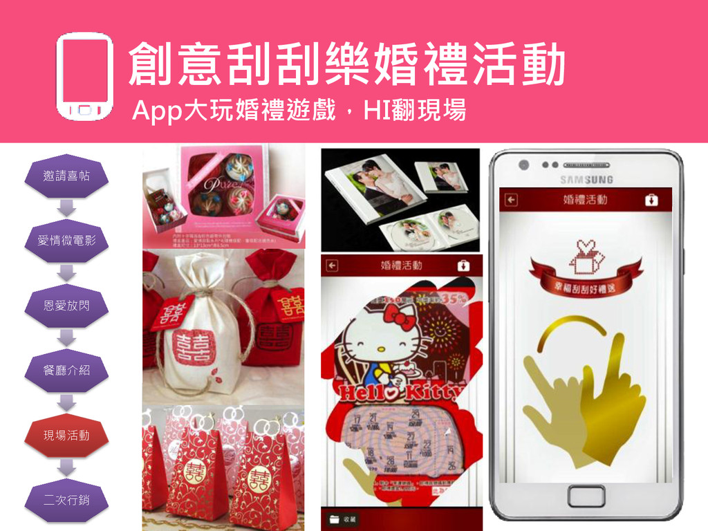 App大玩婚禮遊戲,HI翻現場 創意刮刮樂婚禮活動 邀請喜帖 愛情微電影 恩愛放閃 餐廳介紹 現場活動 二次行銷