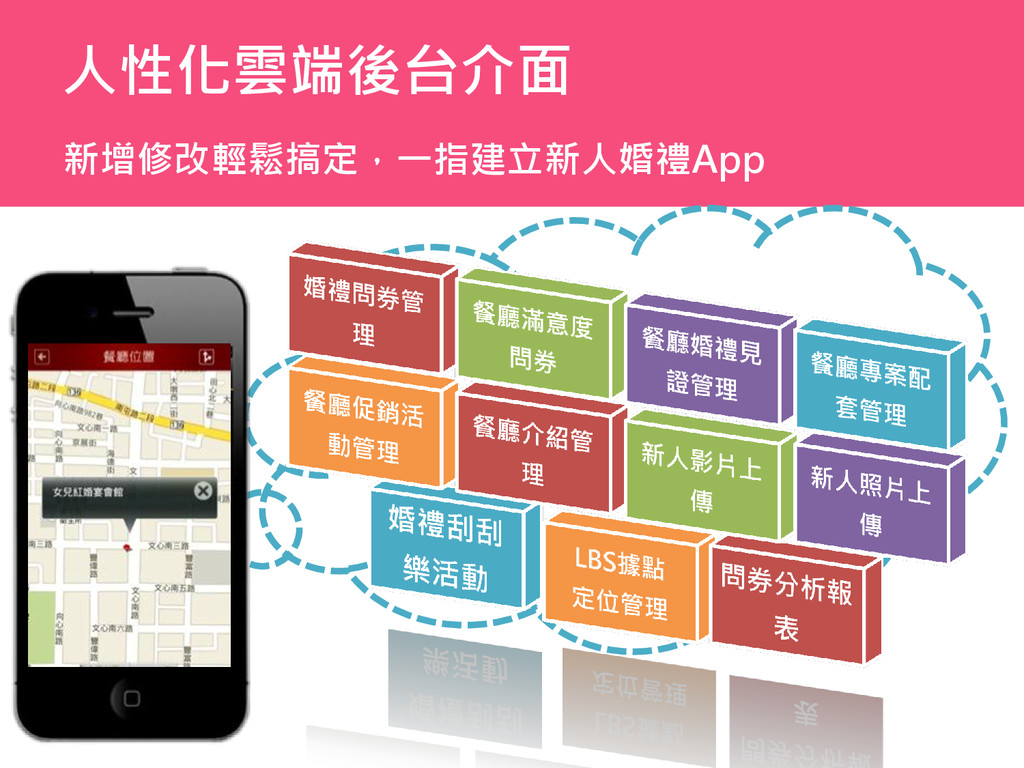 人性化雲端後台介面 新增修改輕鬆搞定,一指建立新人婚禮App
