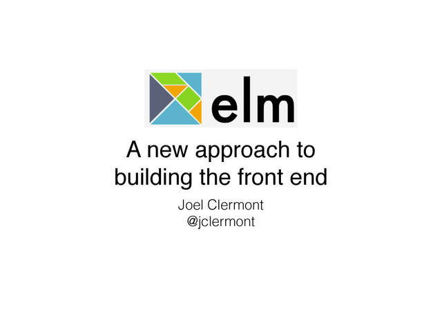 Elm A new approach to building the front end Joel