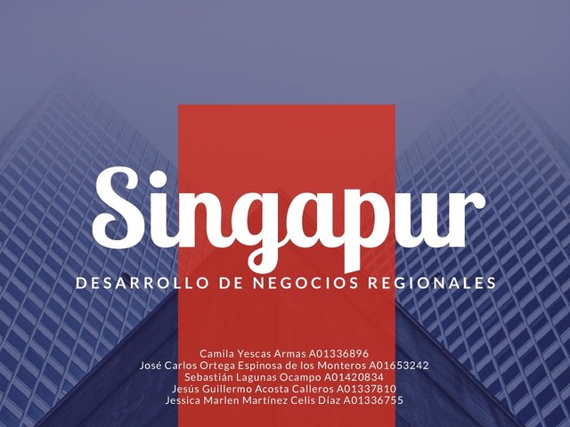 Banco Mundial. Recuperado 27 de febrero de 2018, de https://datos.bancomundial.org/indicator/NY.GDP.MKTP.KD?end=2016&locations=SG&start=1960 Comercio Exterior. (2016). Singapur - La industria química. Comercio Exterior. Recuperado 27 de febrero de 2018, de http://www.comercioexterior.ub.edu/correccion/05-06/singapur2006/1.6.2.entornoneg.potencial.quimica.htm Datos Macro. (2018). Singapur: Economía y demografía 2018. Datos Macro. Recuperado 27 de febrero de 2018, de https://www.datosmacro.com/paises/singapur Denmark in Singapore. (2018). Business culture in Singapore. Denmark in Singapore. Recuperado 27 de febrero de 2018, de http://singapore.um.dk/en/the-trade-council/menu-4/ Doing Business. (2017). Clasificación de las economías. Doing Business. Recuperado 27 de febrero de 2018, de http://espanol.doingbusiness.org/rankings DS. (2018). Historia de Singapur - Presente, pasado y futuro de Singapur. Disfruta Singapur. Recuperado 27 de febrero de 2018, de https://www.disfrutasingapur.com/historia Economipedia. (2018). Países por PIB. Economipedia. Recuperado 27 de febrero de 2018, de http://economipedia.com/ranking/paises-por-pib.html eDiplomat. (2018). Singapore - Cultural Etiquette. eDiplomat. Recuperado 27 de febrero de 2018, de http://www.ediplomat.com/np/cultural_etiquette/ce_sg.htm Encyclopedia Britannica. (2018). Singapore | history - geography. Encyclopedia Britannica. Recuperado 27 de febrero de 2018, de https://www.britannica.com/place/Singapore IE. (2016). Sobre Singapur. Impulso Exterior. Recuperado 27 de febrero de 2018, de http://www.impulsoexterior.com/COMEX/servlet/MuestraArchivo?id_=2_340 Knoema. (2017). Singapur Deuda pública bruta, 1980-2017. Knoema. Recuperado 27 de febrero de 2018, de https://knoema.es/atlas/Singapur/Deuda-p%C3%BAblica-bruta Knoema. (2017). Singapur Tasa de desempleo, 1980-2017. Knoema. Recuperado 27 de febrero de 2018, de https://knoema.es/atlas/Singapur/Tasa- de-desempleo OEC. (2018). Trade Balance: Singapore. Observatory of Economic Complexity. Recuperado 27 de febrero de 2018, de https://atlas.media.mit.edu/en/profile/country/sgp/#Trade_Balance OECE. (2007). Informe Económico y Comercial de Singapur. Madrid: Oficina Económica y Comercial de España en Singapur. Recuperado de http://www.comercio.es/tmpDocsCanalPais/A697FB6AC30FA9063DBA4250873A91F7.pdf TGE. (2017). Singapur Inflación - datos, tabla. The Global Economy. Recuperado 27 de febrero de 2018, de http://es.theglobaleconomy.com/Singapore/Inflation/