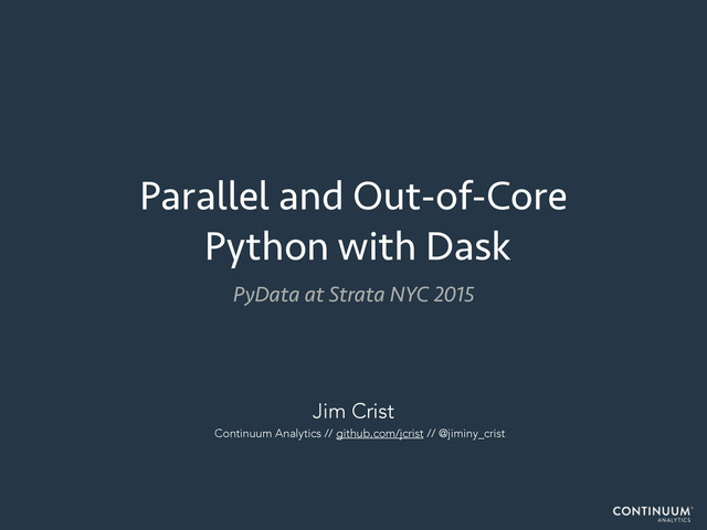 Given as part of a general tutorial on the Blaze ecosystem. Provides an overview of Dask (http://dask.pydata.org/en/latest/), as well as some examples.