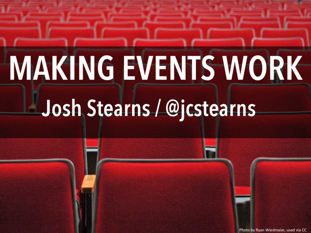 Created with Haiku Deck For Newsrooms: • Diversify revenue streams • Direct connection to your community • A benefit for members • Another form of content Why Are People Investing in Events? For Communities: • A desire for connection and to meet others with shared interests • A resurgence of the analog • A desire to meet journalists they care about • A desire for news that connects to their daily lives • Fun, learning For Advertisers: • Guarantee to be seen • Association with cool • Super targeted to specific audiences • Opportunity to interact Photo by Bahman Farzad used via cc