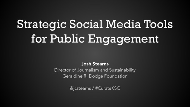 of Journalism and Sustainability Geraldine R. Dodge Foundation @jcstearns / #CurateKSG