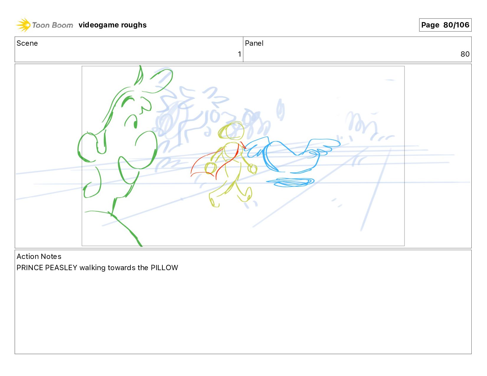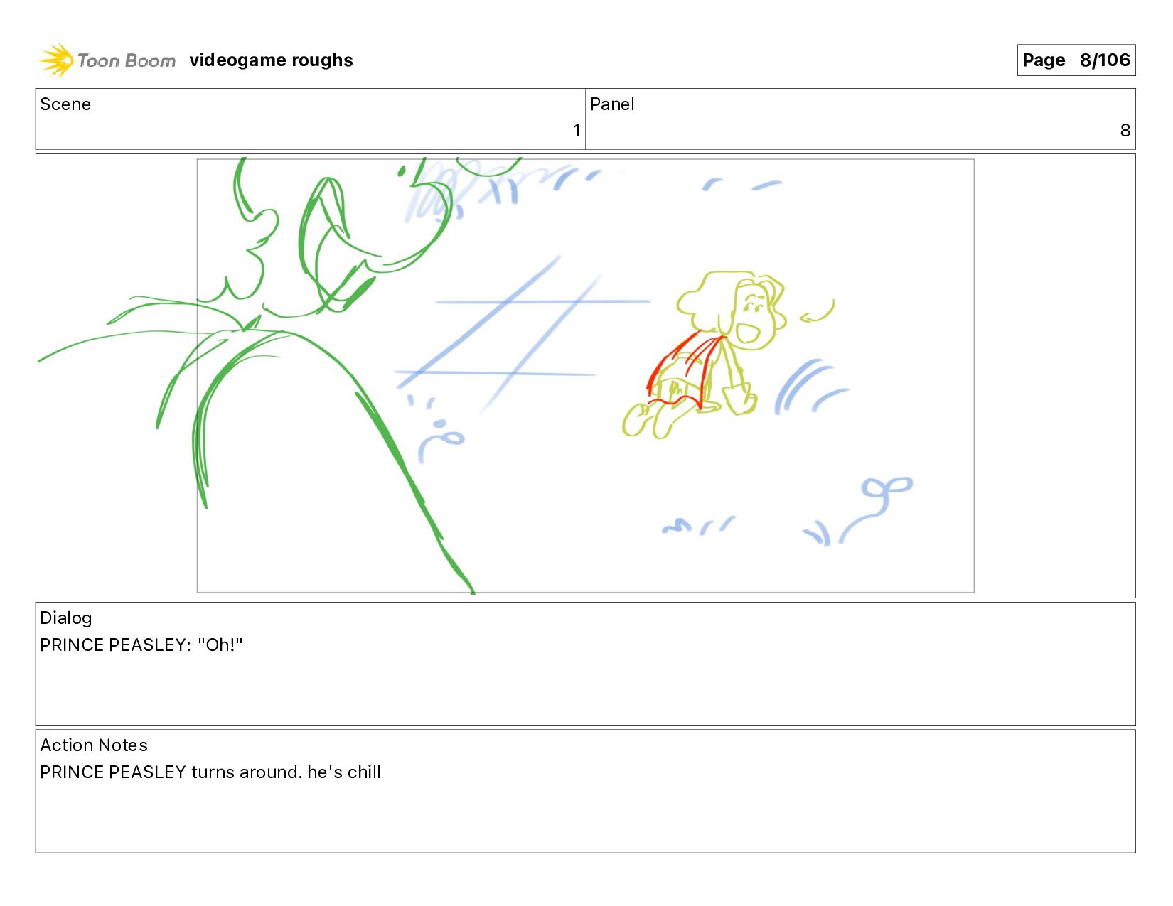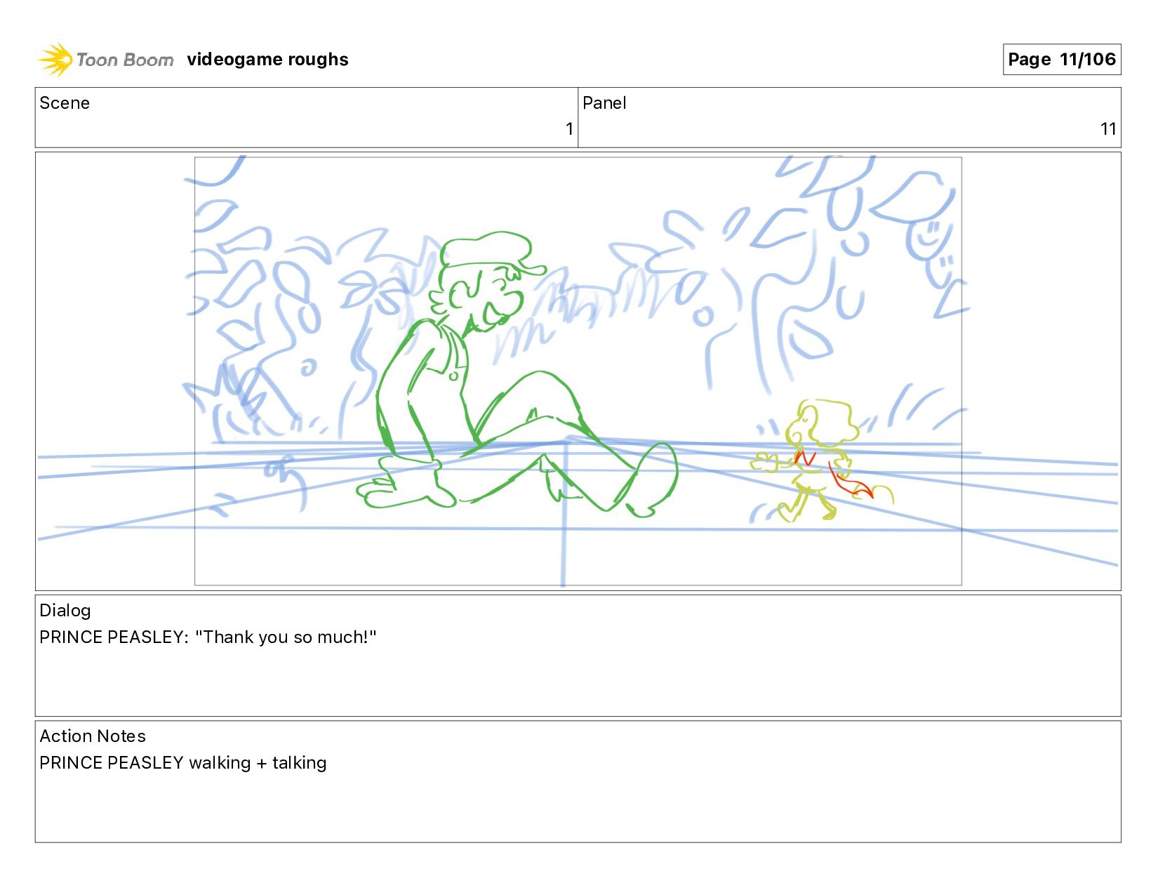 much!" Action Notes PRINCE PEASLEY walking + talking videogame roughs Page 11/106