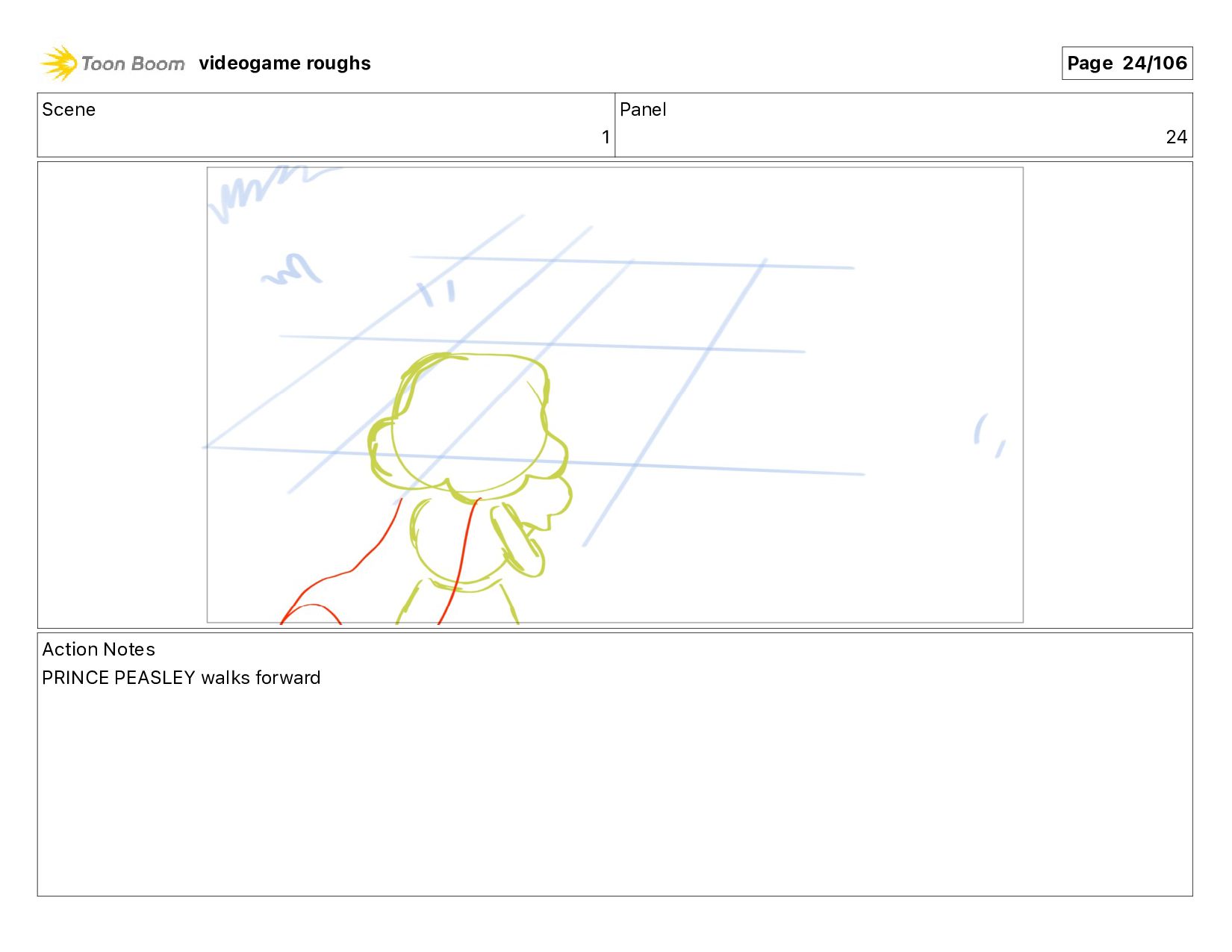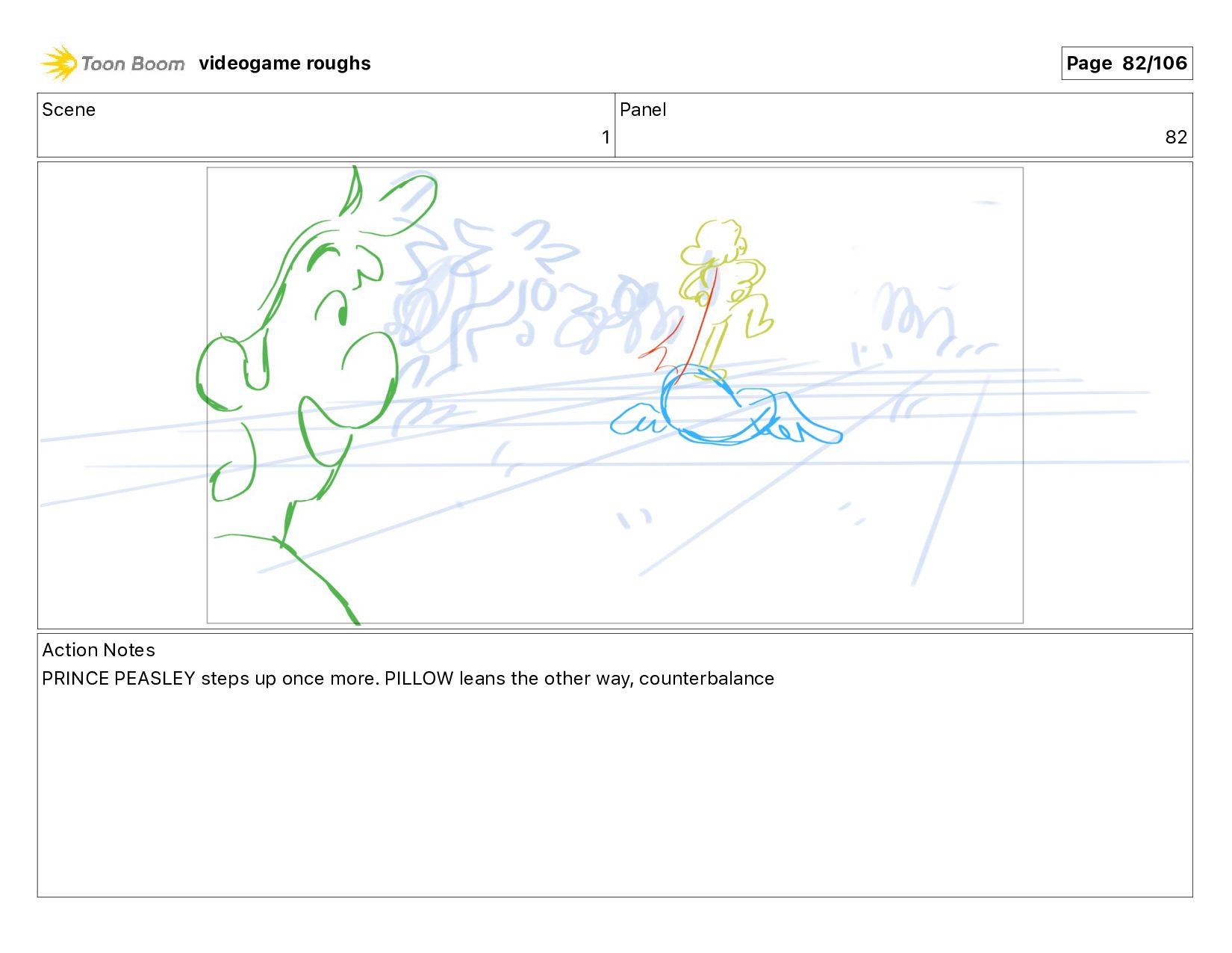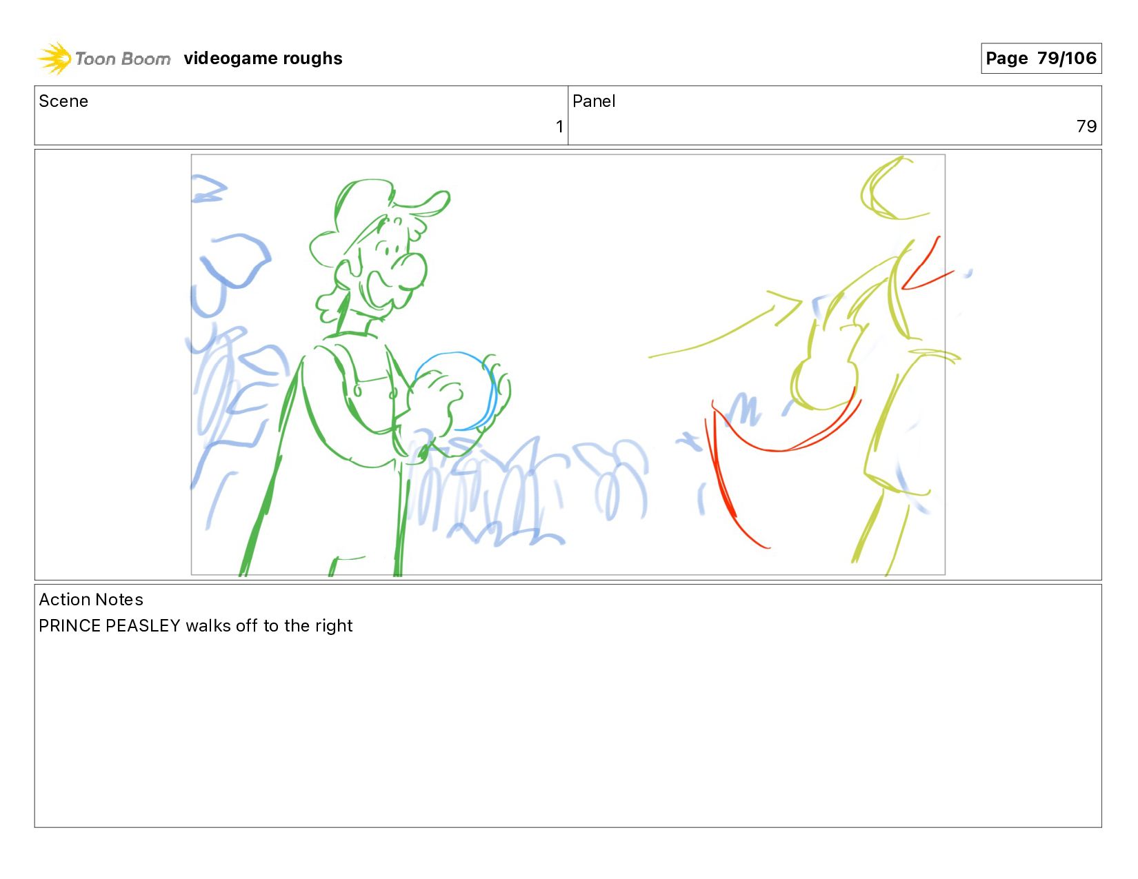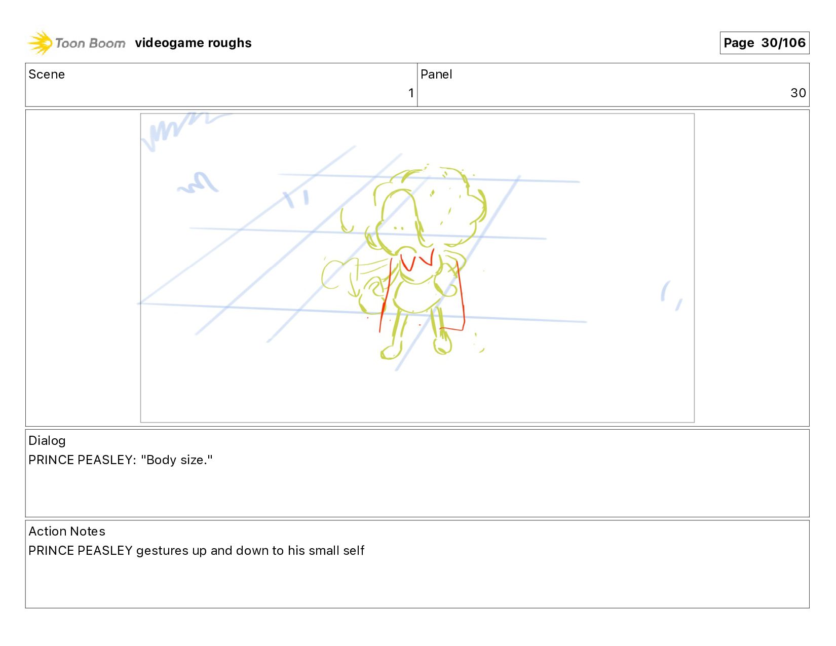 much!" Action Notes PRINCE PEASLEY walking + talking videogame roughs Page 11/106