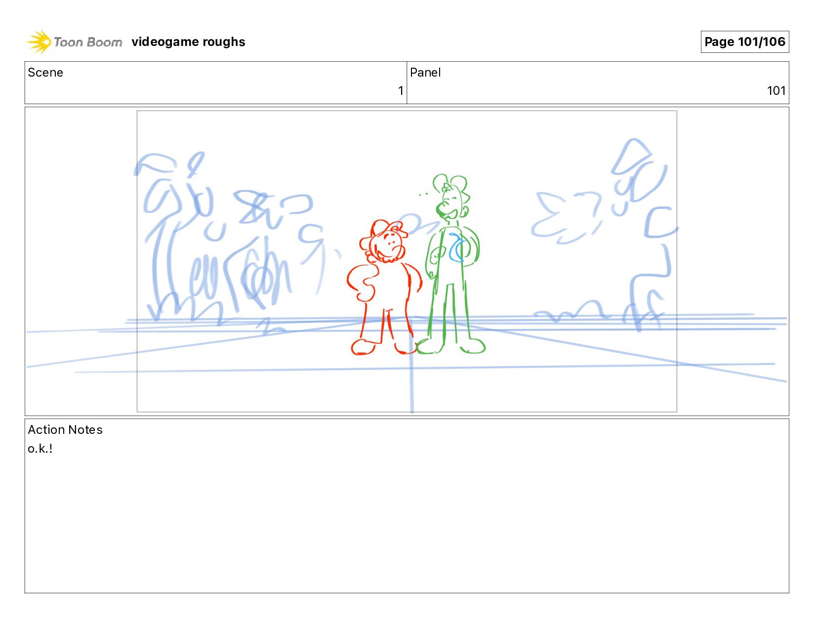 Scene 1 Panel 101 Action Notes o.k.! videogame roughs Page