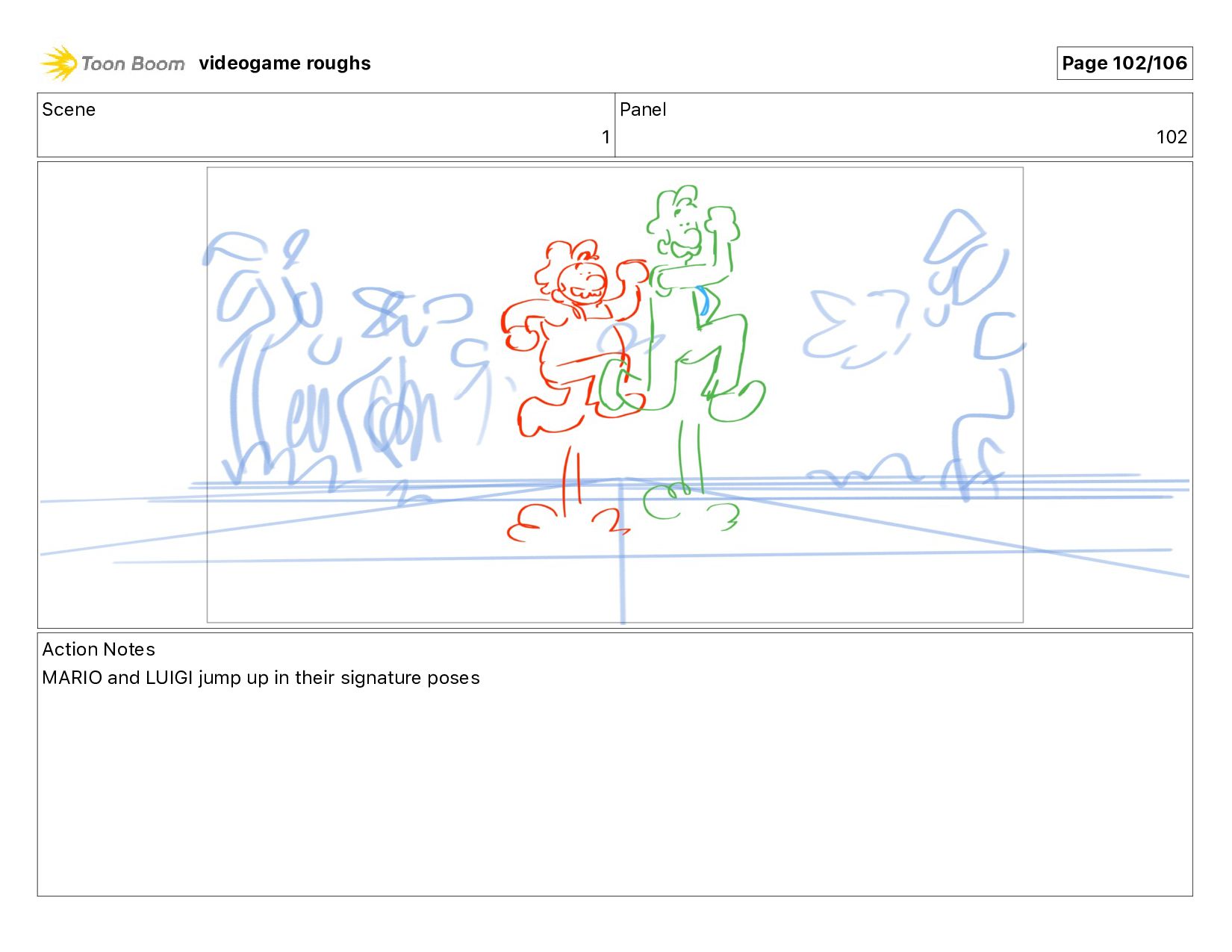 Scene 1 Panel 102 Action Notes MARIO and LUIGI jump