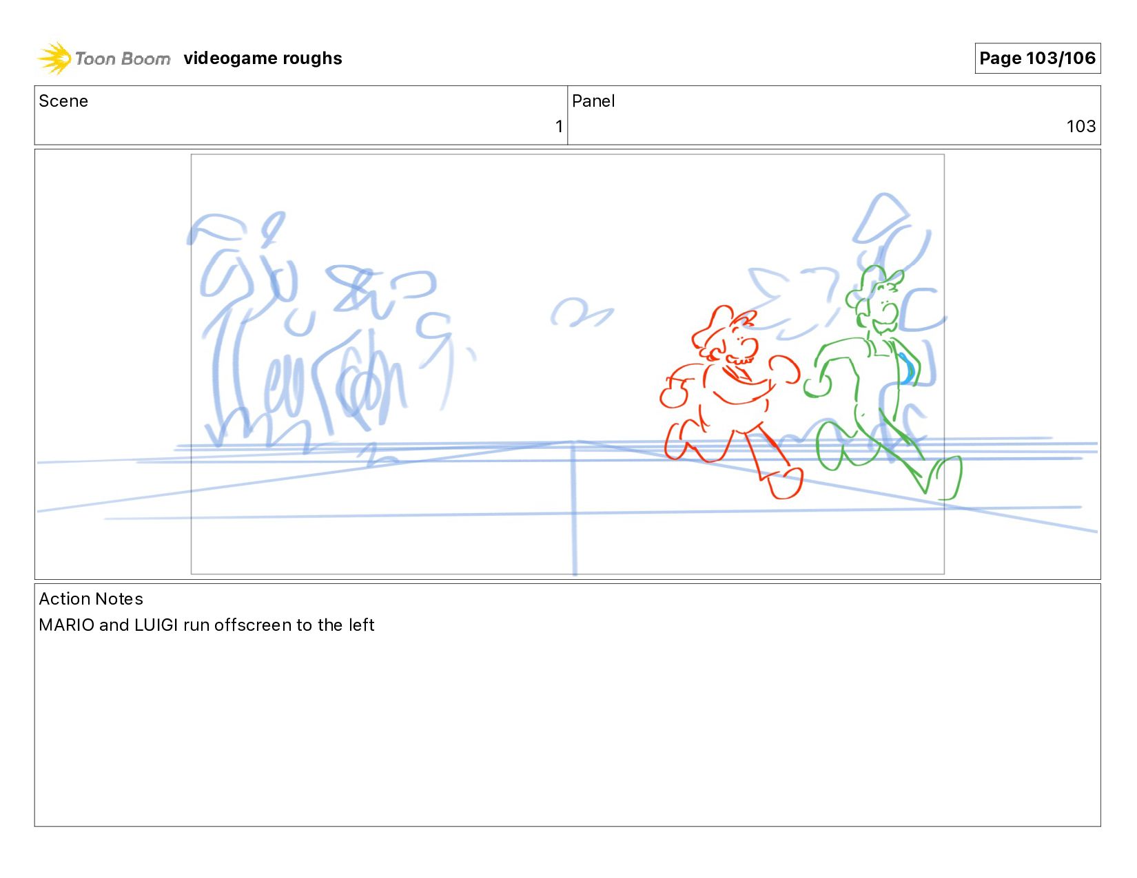 Scene 1 Panel 103 Action Notes MARIO and LUIGI run