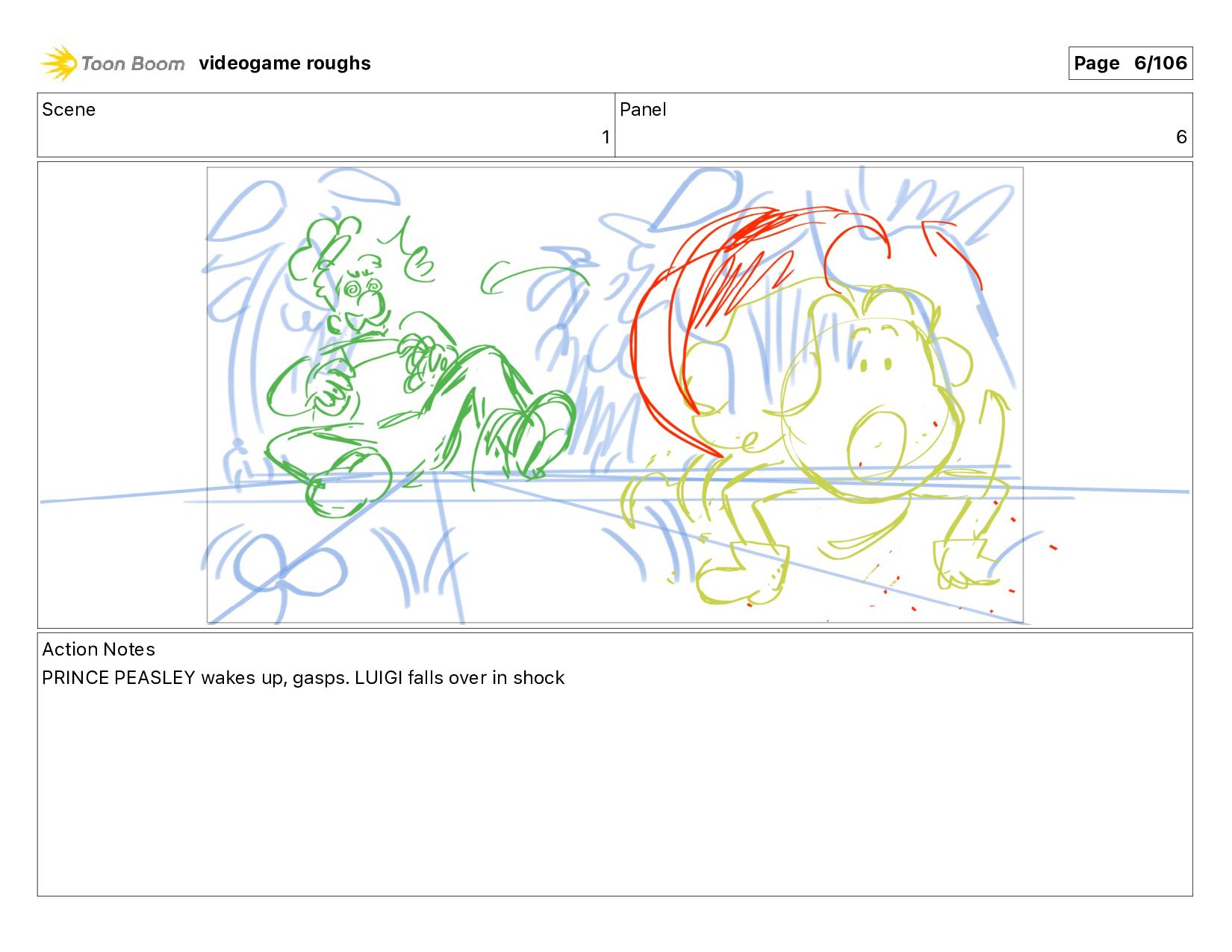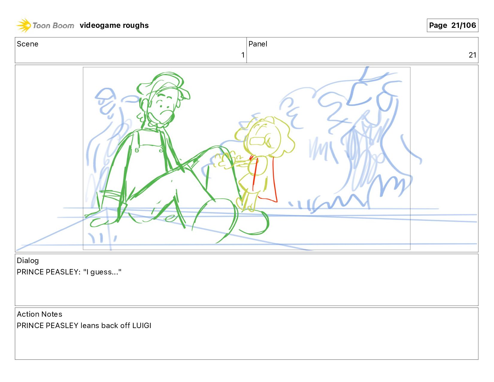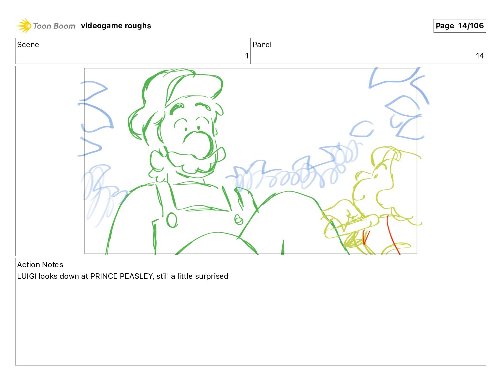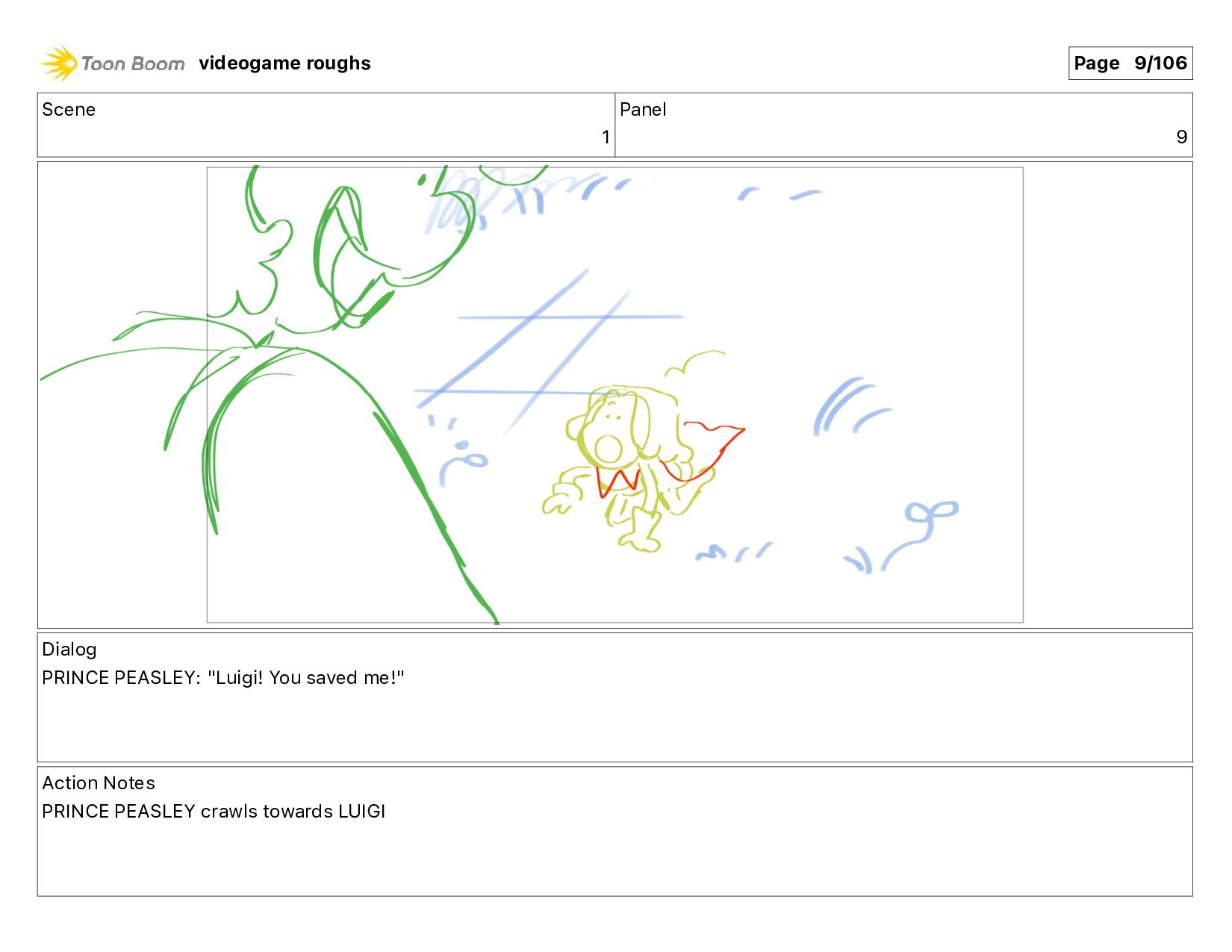 me!" Action Notes PRINCE PEASLEY crawls towards LUIGI videogame roughs Page 9/106