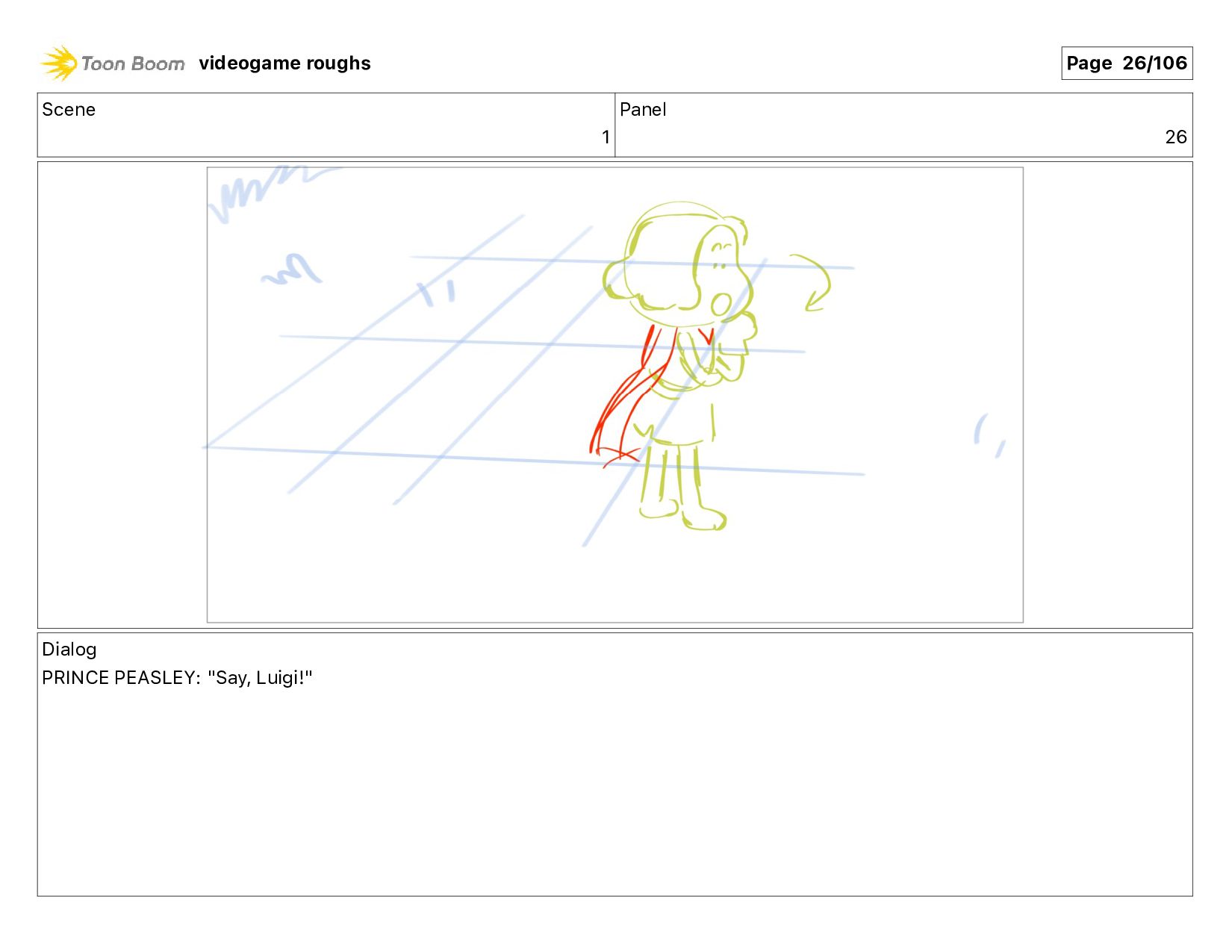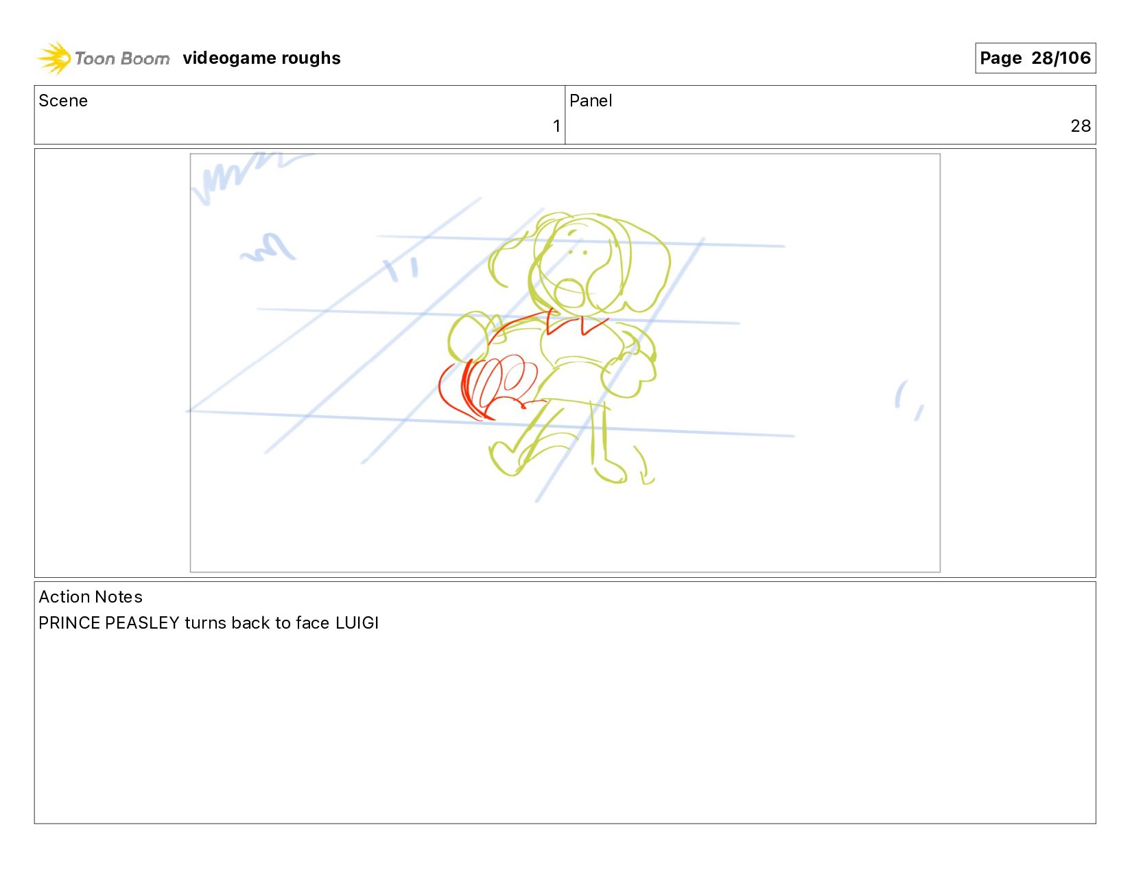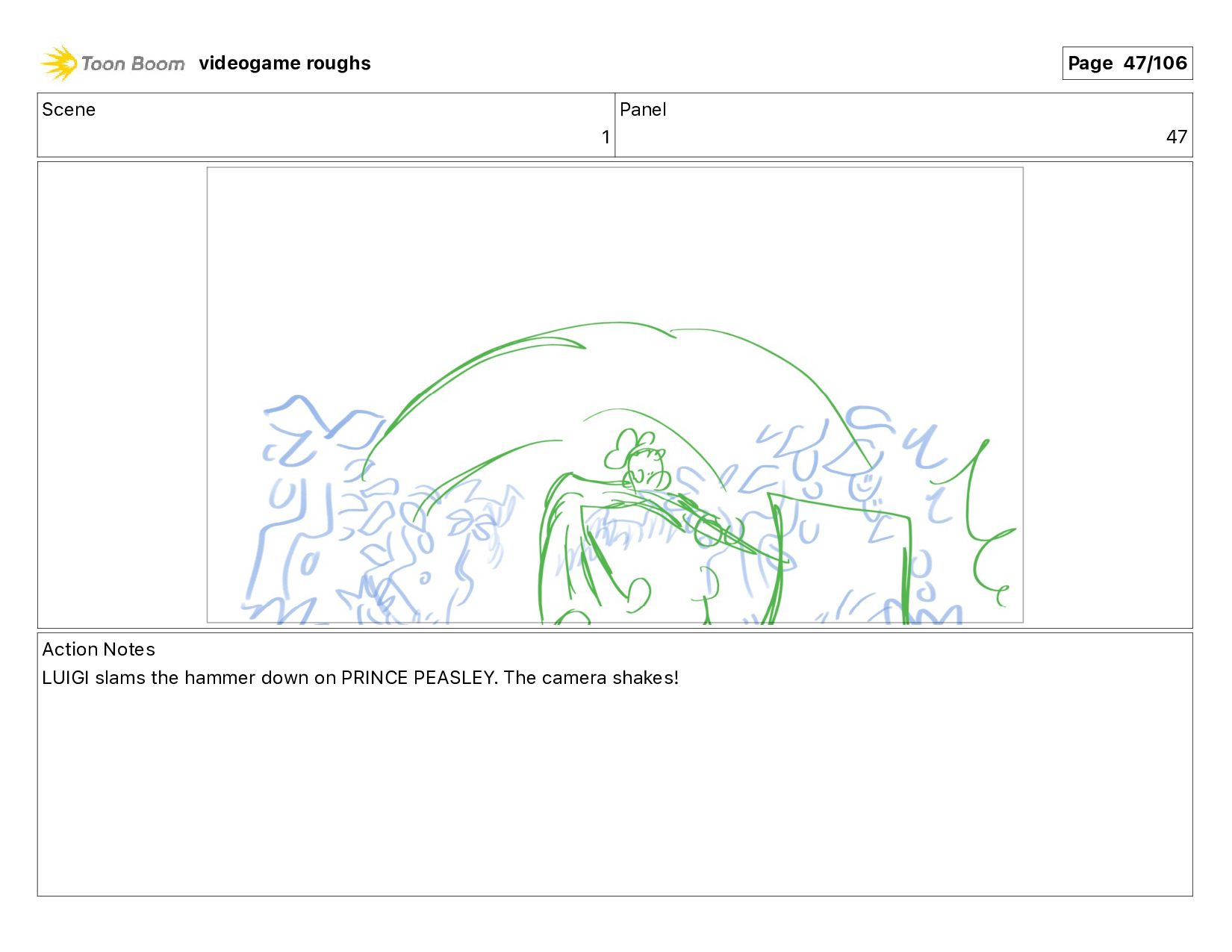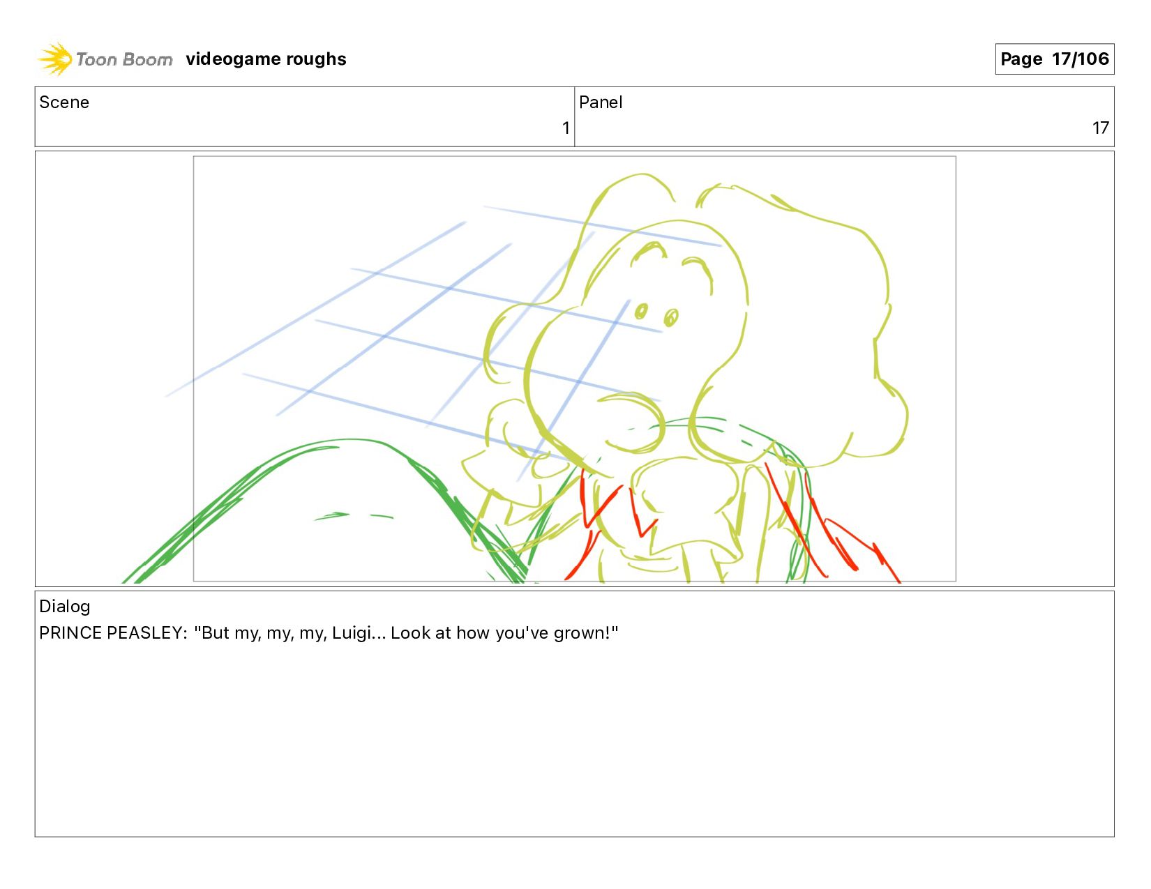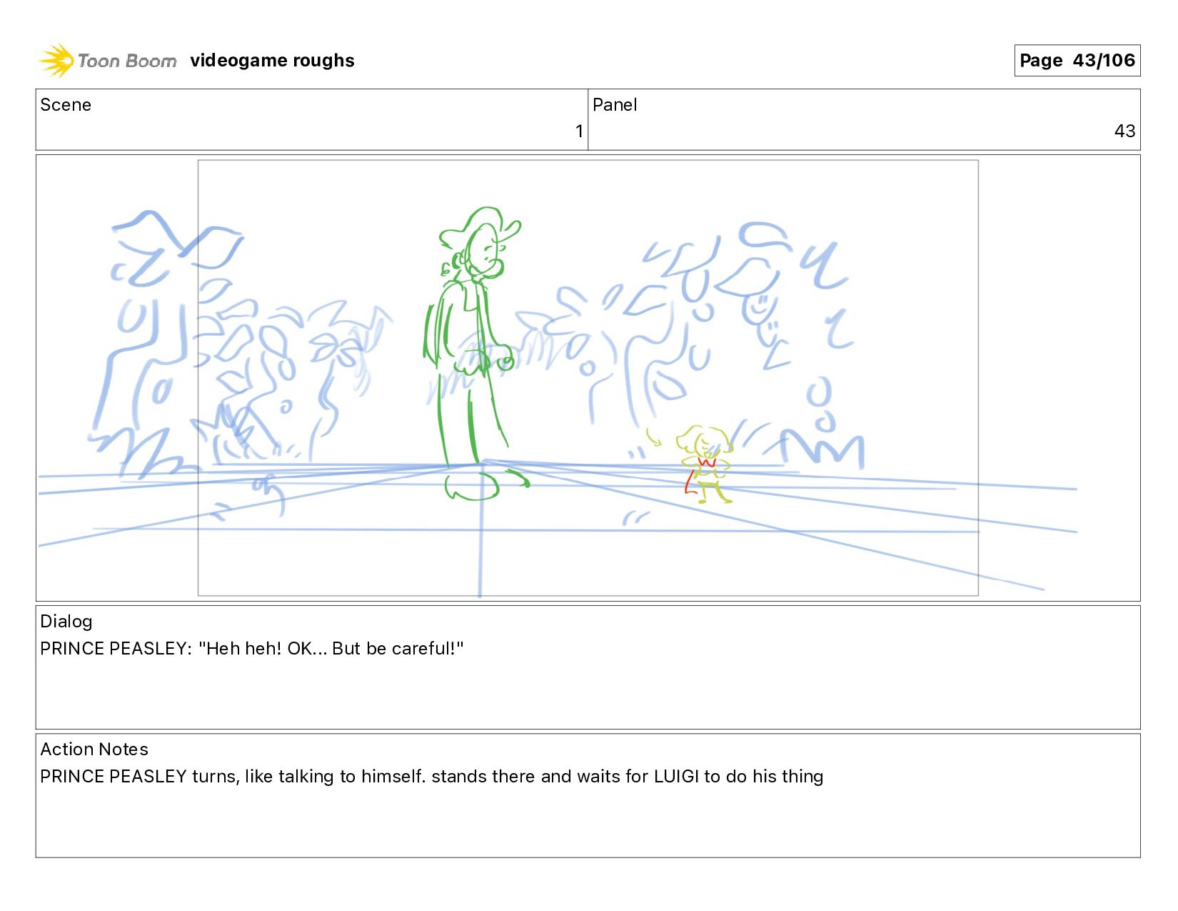me!" Action Notes PRINCE PEASLEY crawls towards LUIGI videogame roughs Page 9/106